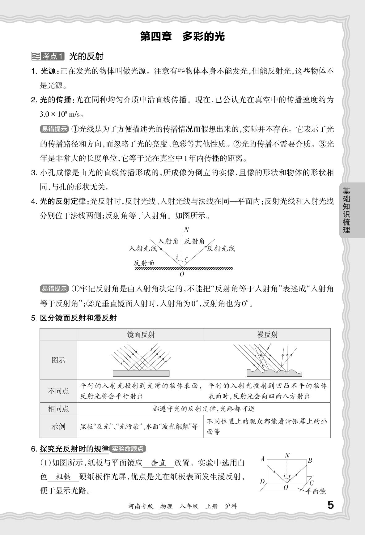 2023秋上册八年级物理沪科版 期末过课本·基础知识梳理 第四章 多彩的光_R231124175347741