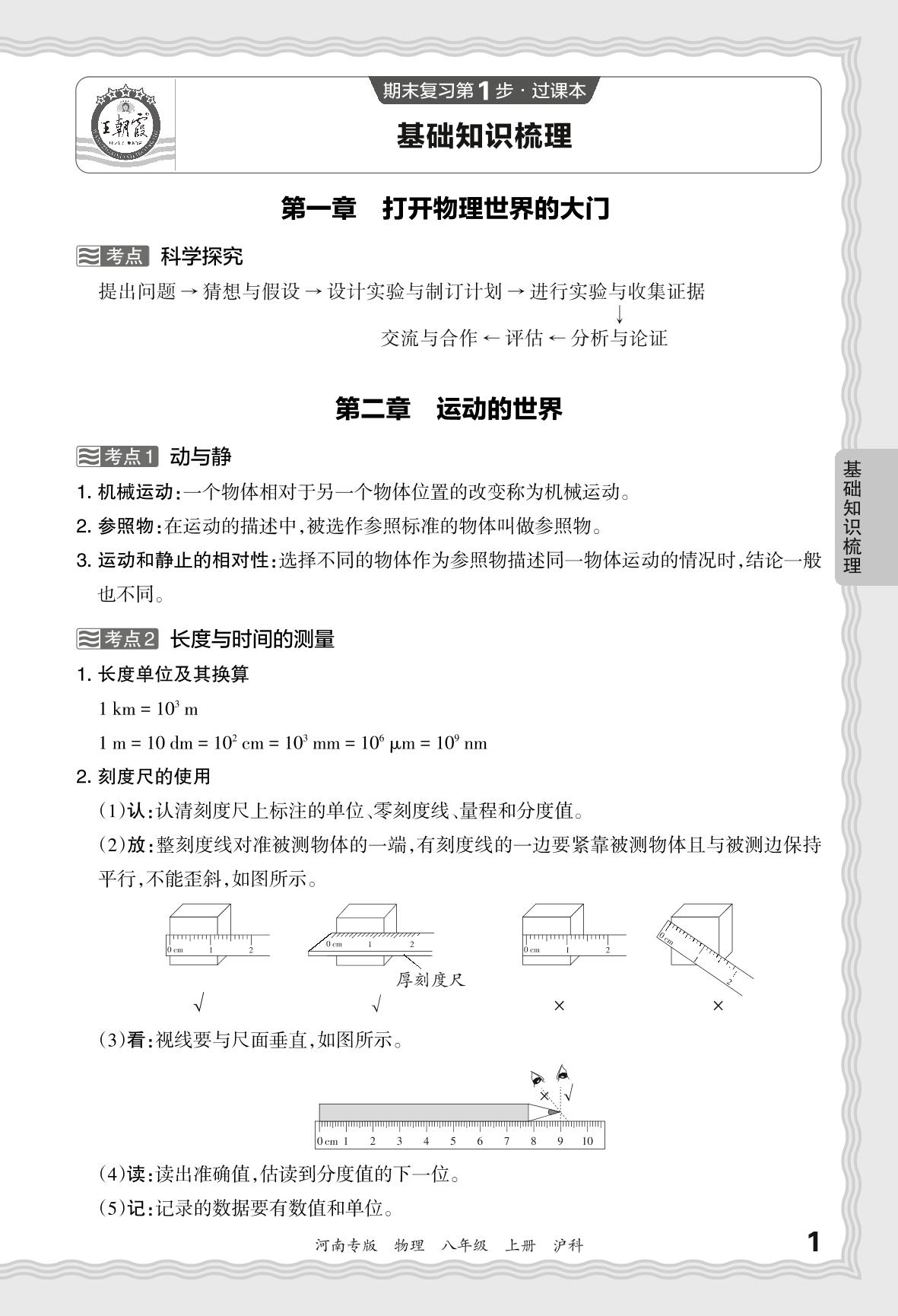 2023秋上册八年级物理沪科版 期末过课本·基础知识梳理 第一章 打开物理世界的大门_R231124175348298