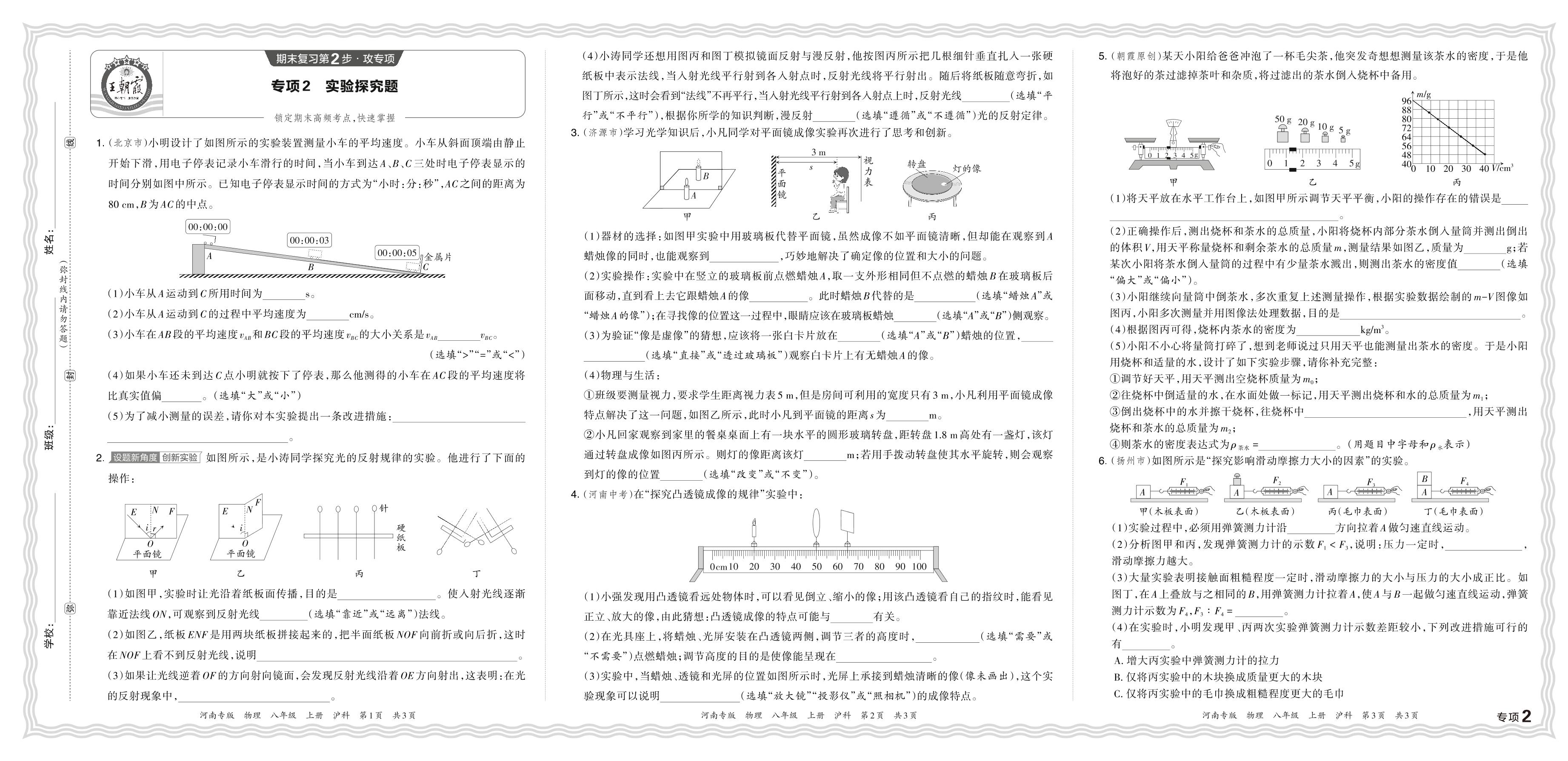 2023秋上册八年级物理沪科版 期末专项卷·实验探究题【2】
