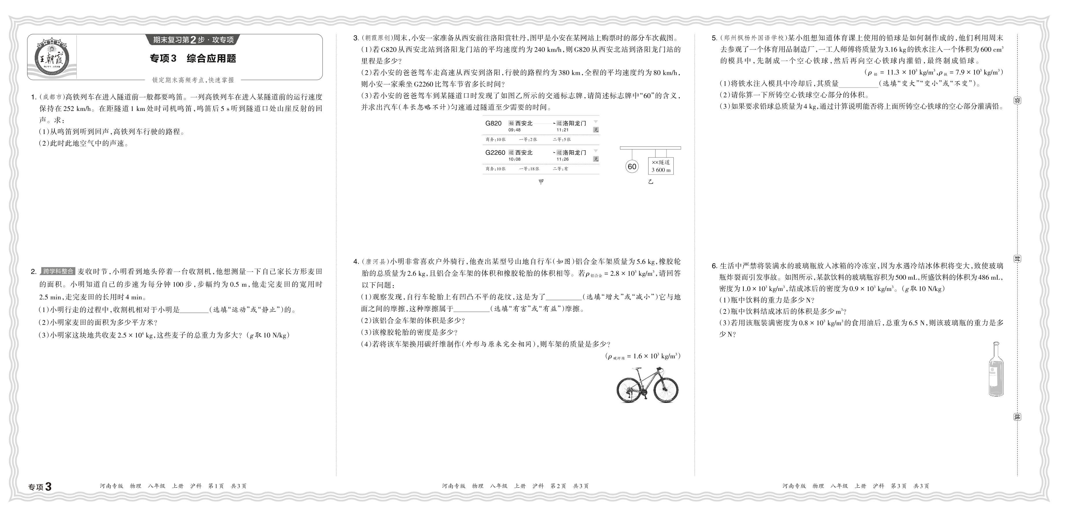 2023秋上册八年级物理沪科版 期末专项卷·综合应用题【3】