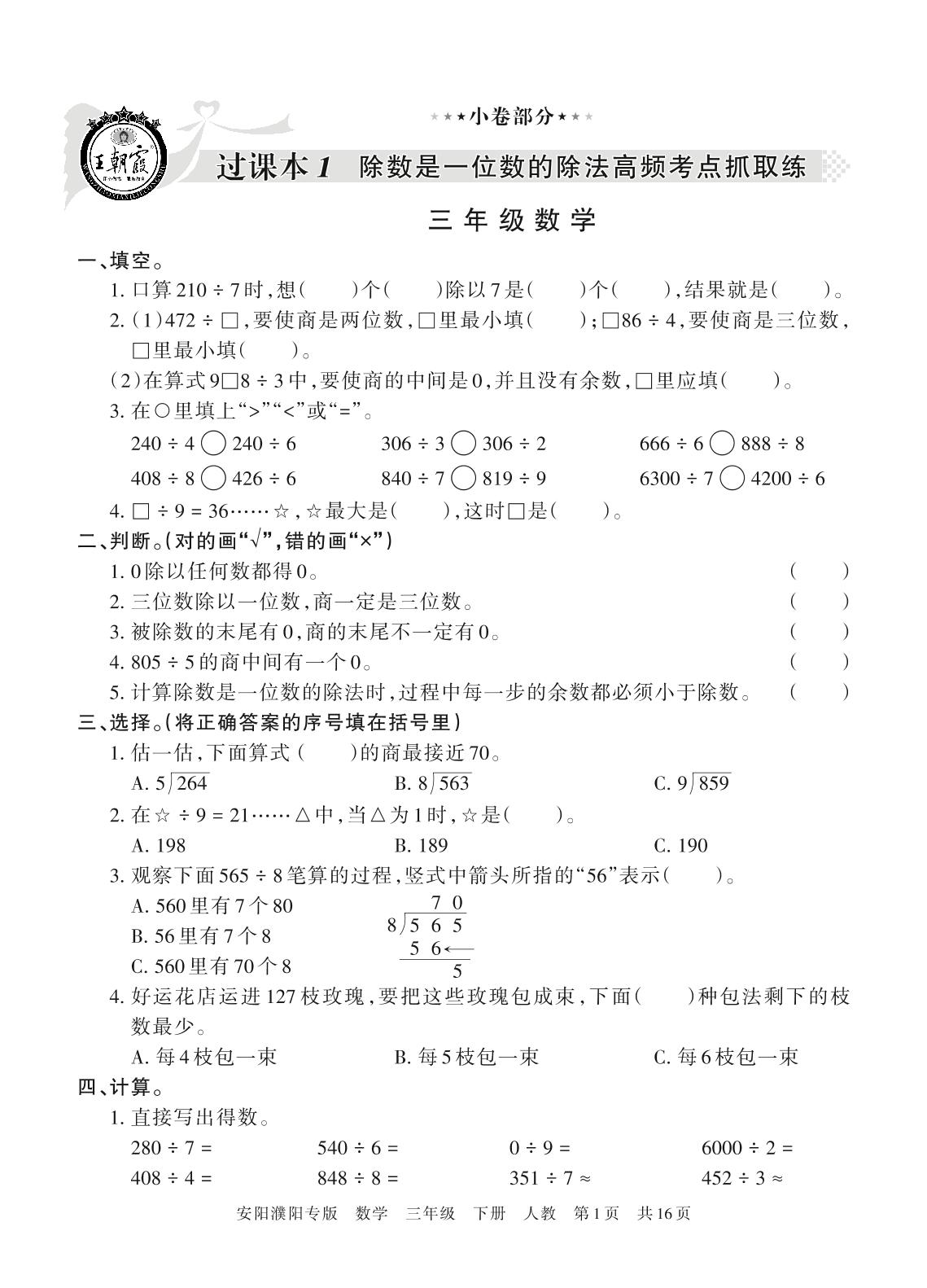 王朝霞期末小卷三年级下册数学(人教版)_R21080484427【0】