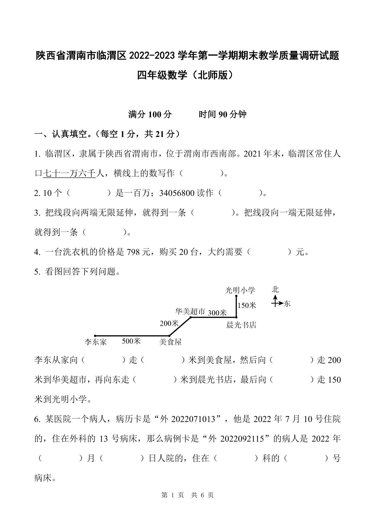 陕西省渭南市临渭区2022-2023学年度第一学期期末教学质量调研试题四年级数学(北师版)