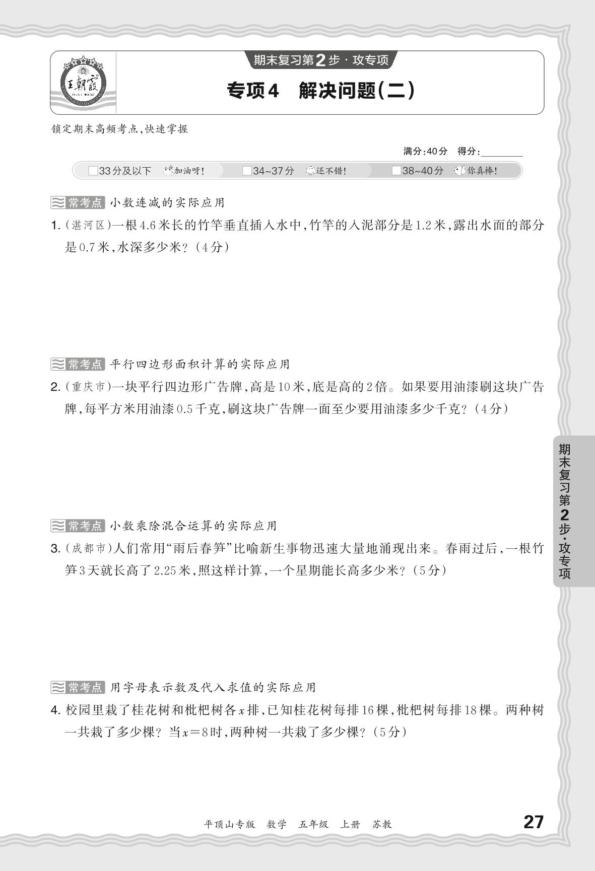 2023秋上册五年级数学苏教版 期末专项卷·解决问题(二)_R231125100650922【4】
