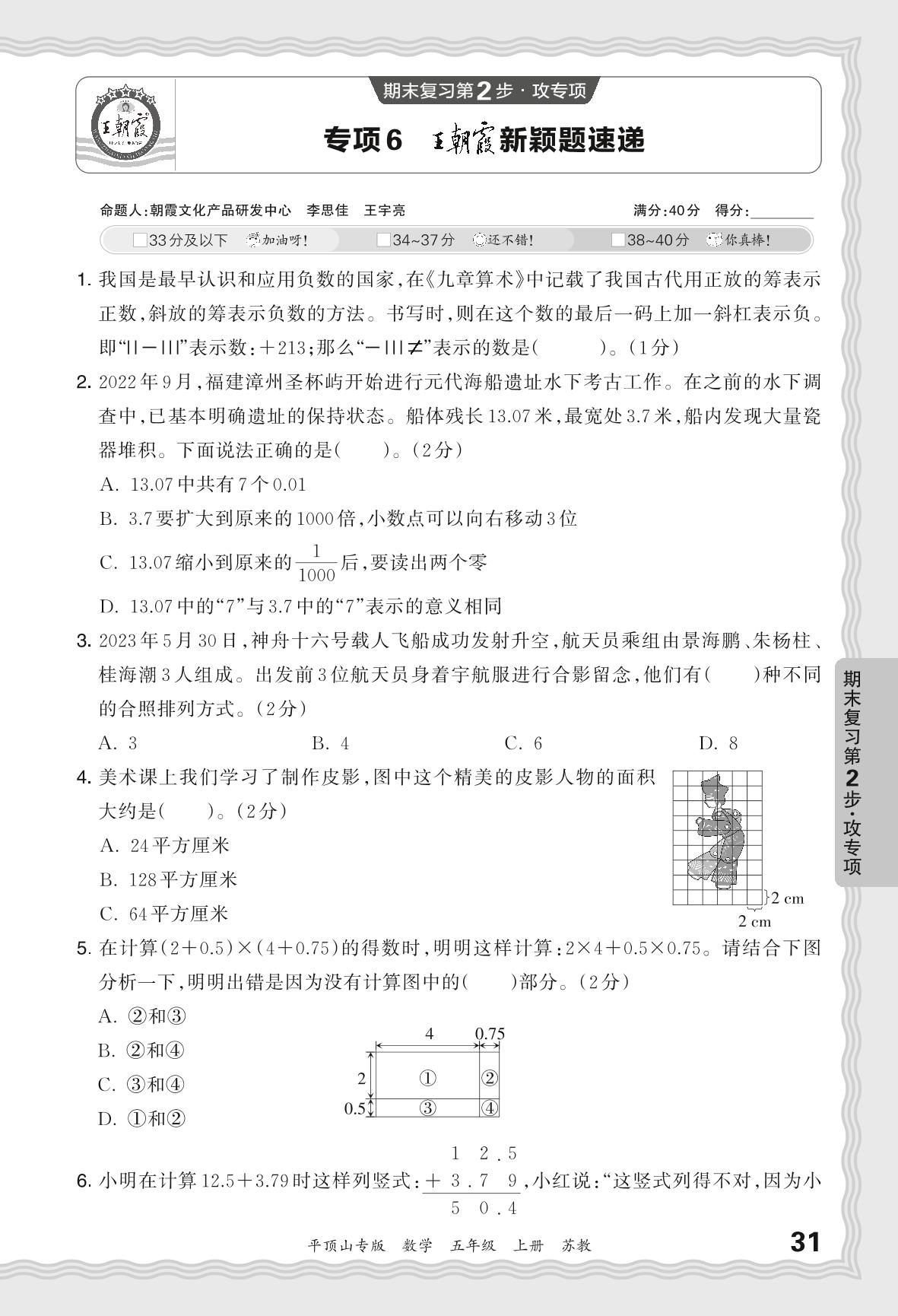 2023秋上册五年级数学苏教版 期末专项卷·王朝霞新颖题速递【6】