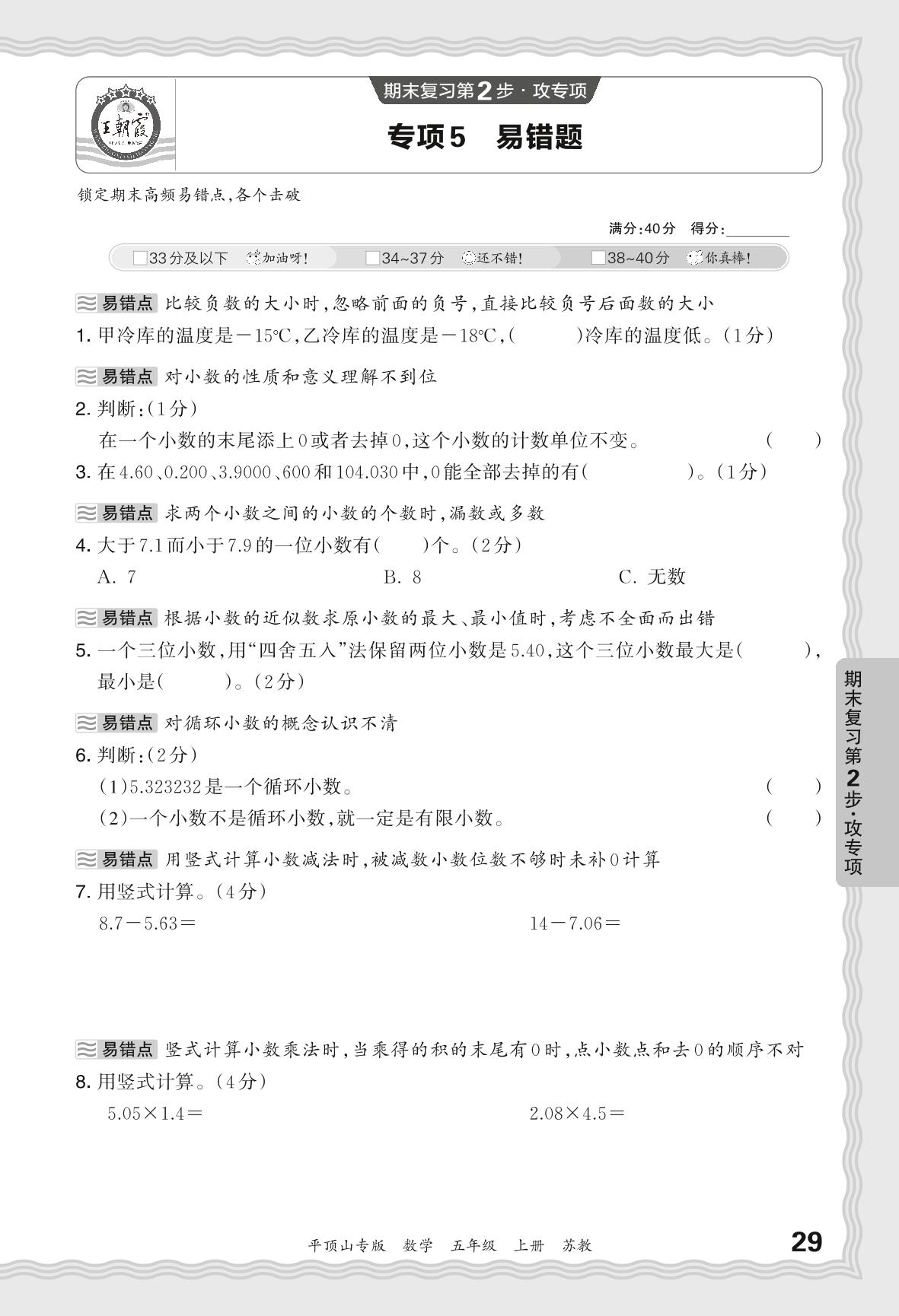 2023秋上册五年级数学苏教版 期末专项卷·易错题_R231125100651734【5】