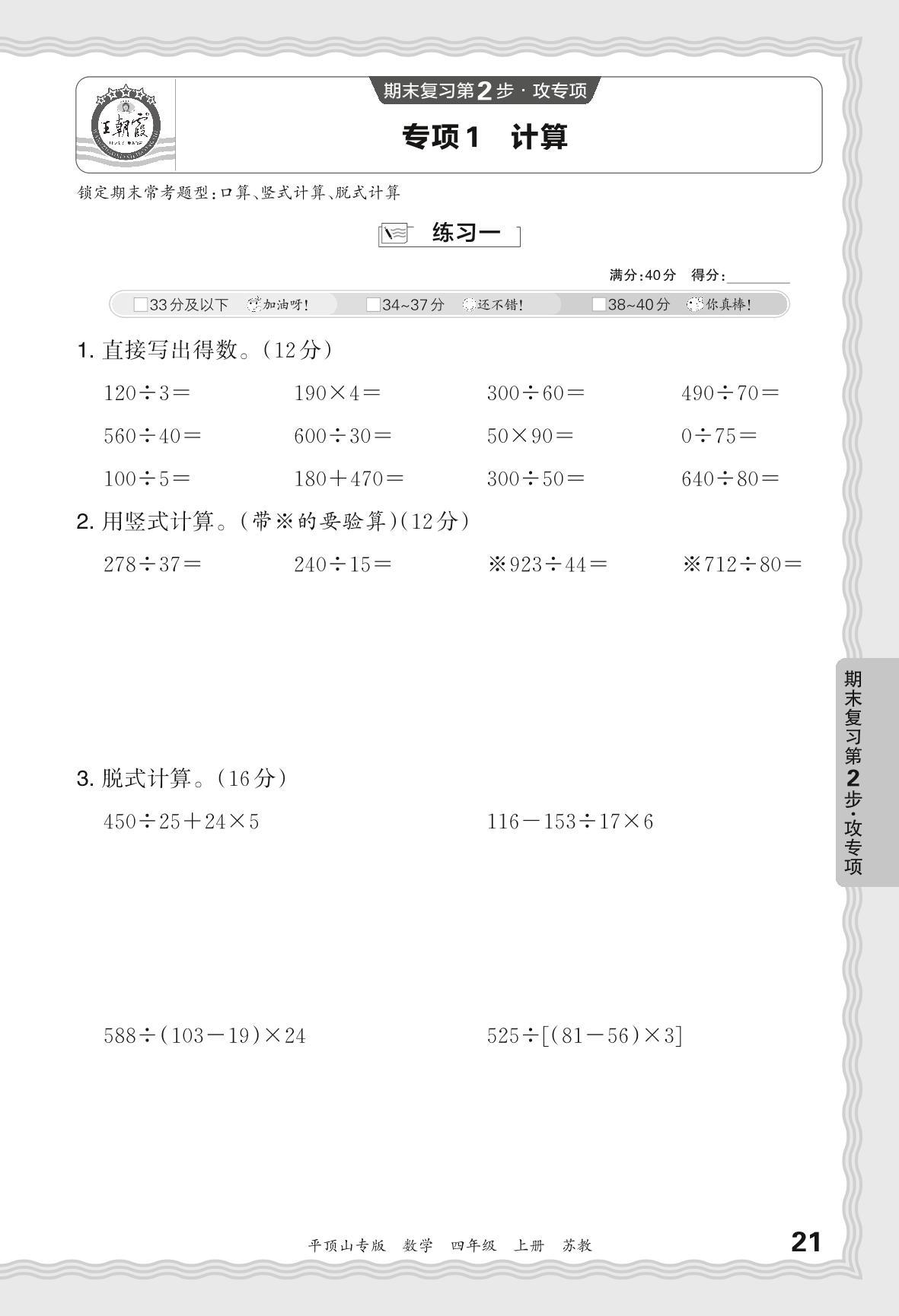 2023秋上册四年级数学苏教版 期末专项卷·计算_R231125101940114【1】