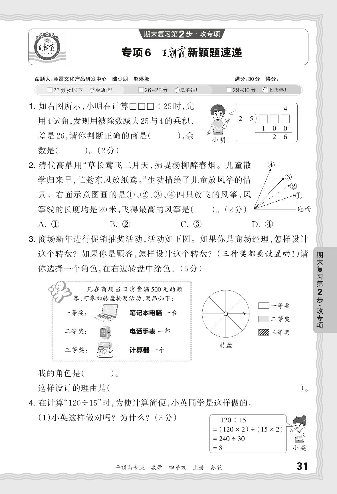 2023秋上册四年级数学苏教版 期末专项卷·王朝霞新颖题速递【6】