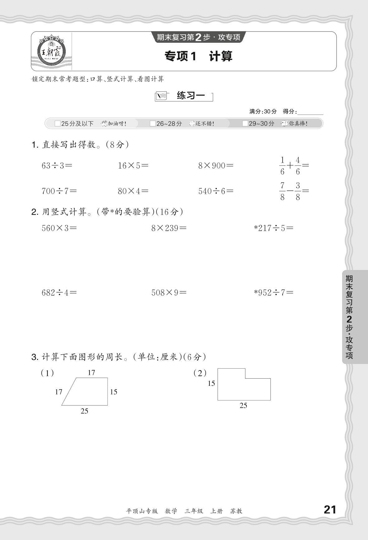 2023秋上册三年级数学苏教版 期末专项卷·计算_R231125102355943【1】