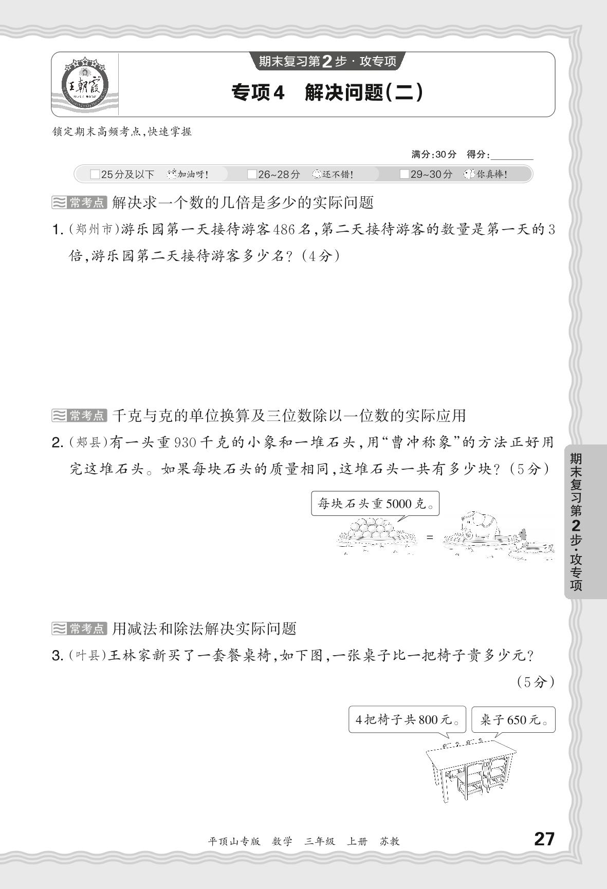 2023秋上册三年级数学苏教版 期末专项卷·解决问题(二)_R231125102356344【4】