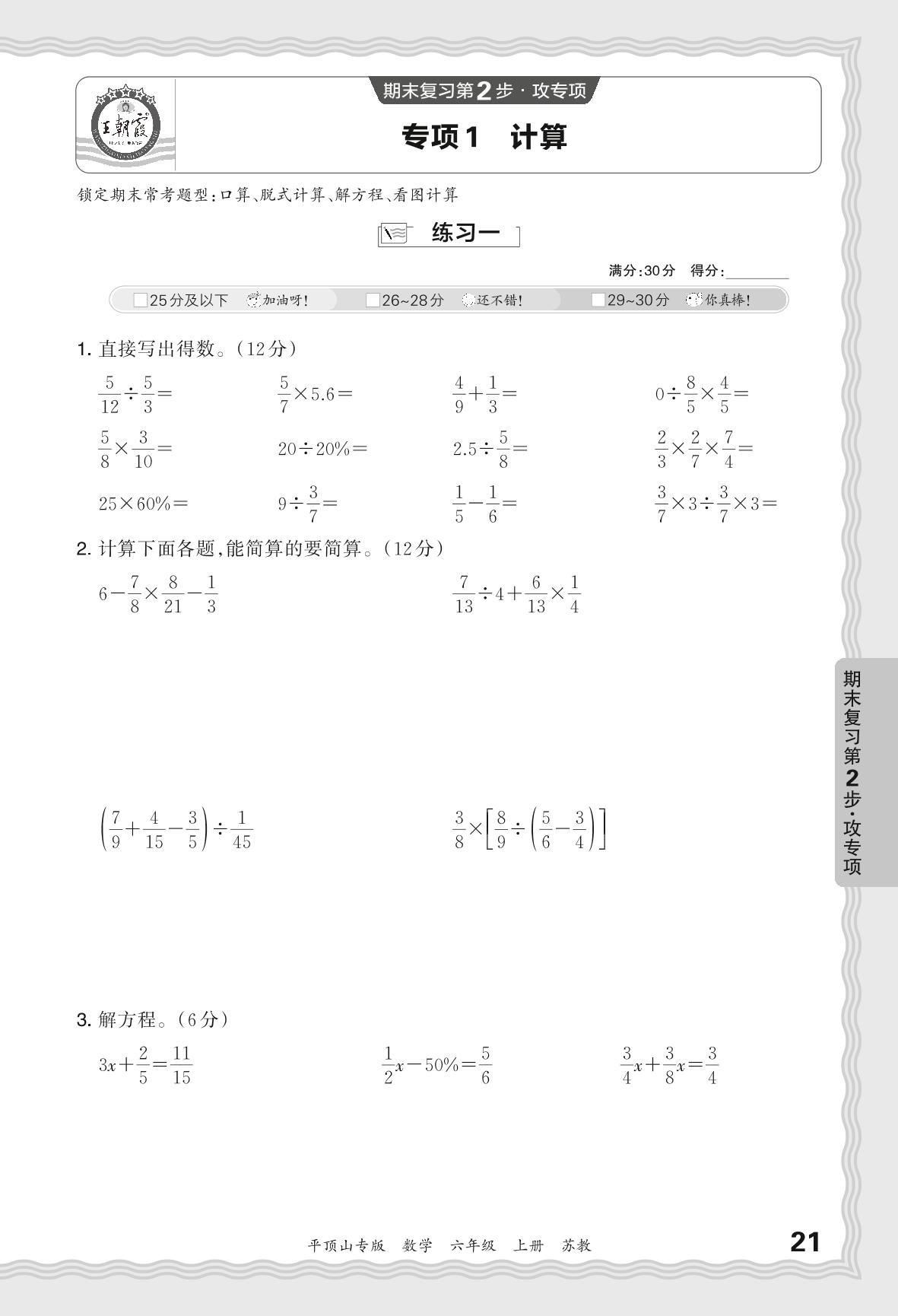 2023秋上册六年级数学苏教版 期末专项卷·计算_R231125102928531【1】