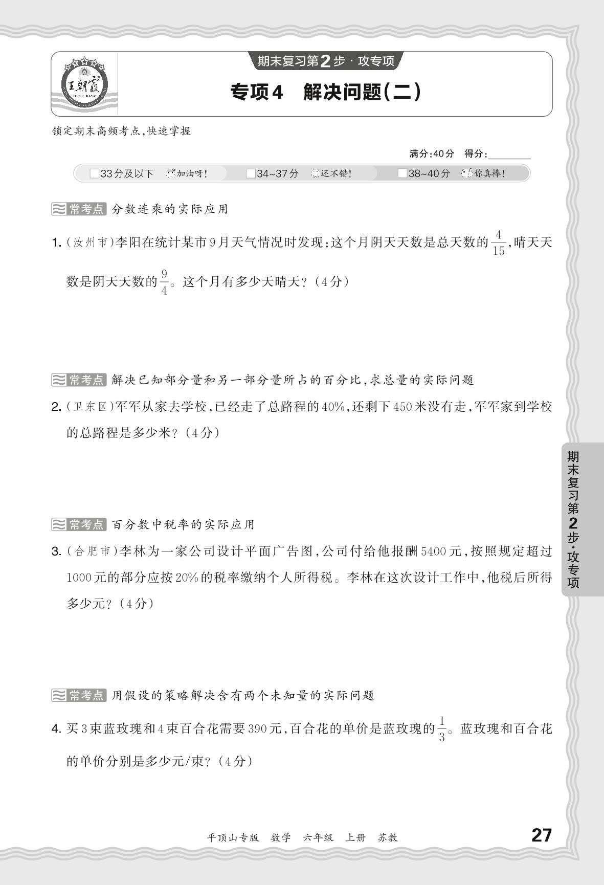 2023秋上册六年级数学苏教版 期末专项卷·解决问题(二)_R231125102928153【4】