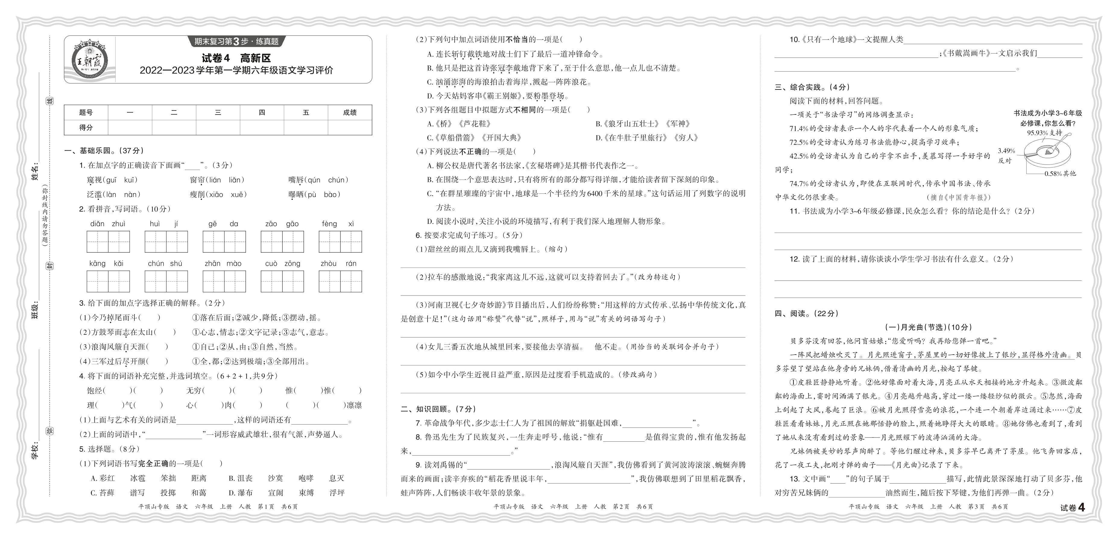 河南省平顶山市高新区2022—2023学年第一学期六年级语文学习评价(人教版)【4】
