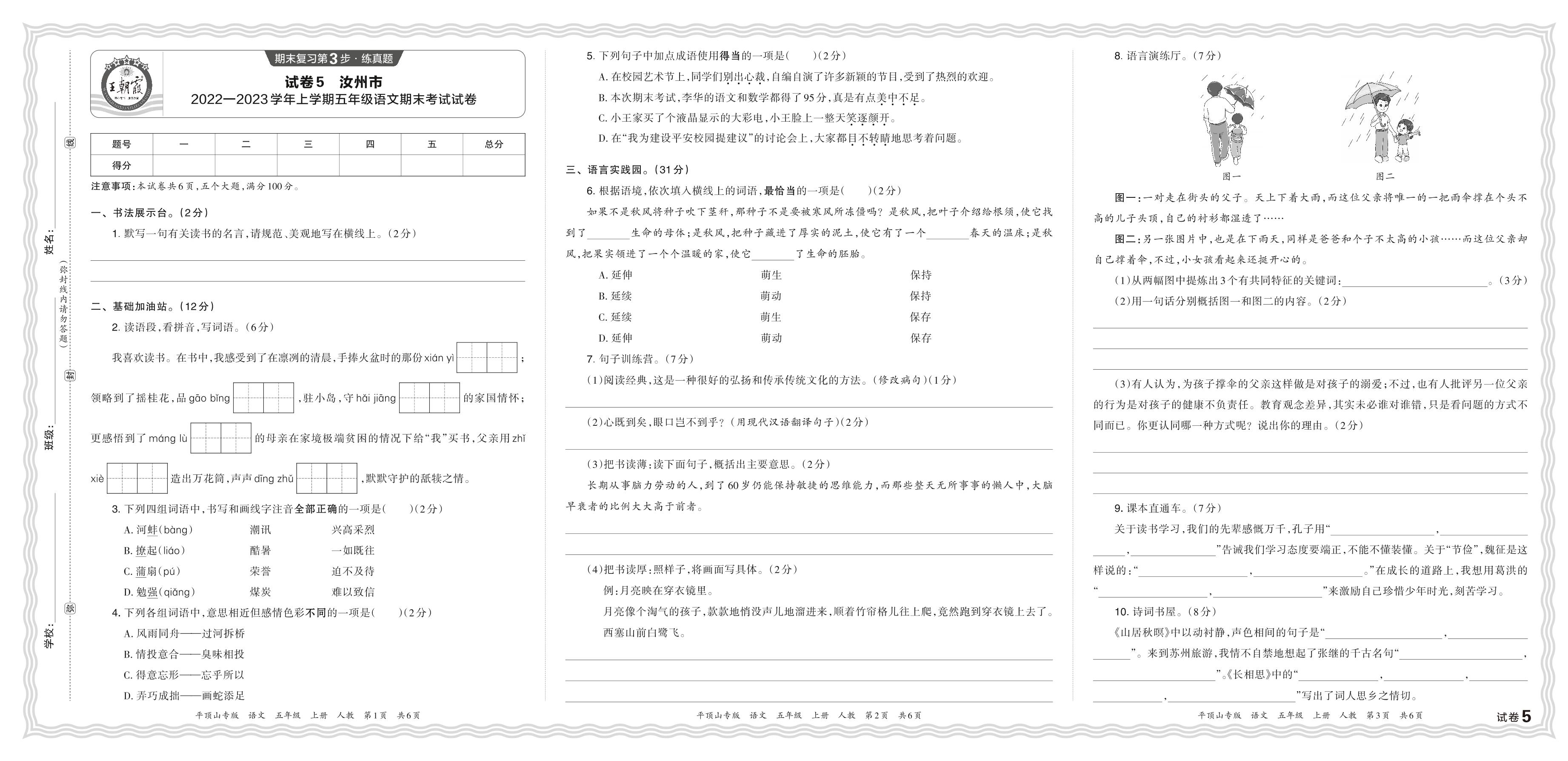 河南省平顶山市汝州市2022—2023学年上学期五年级语文期末考试试卷(人教版)【5】