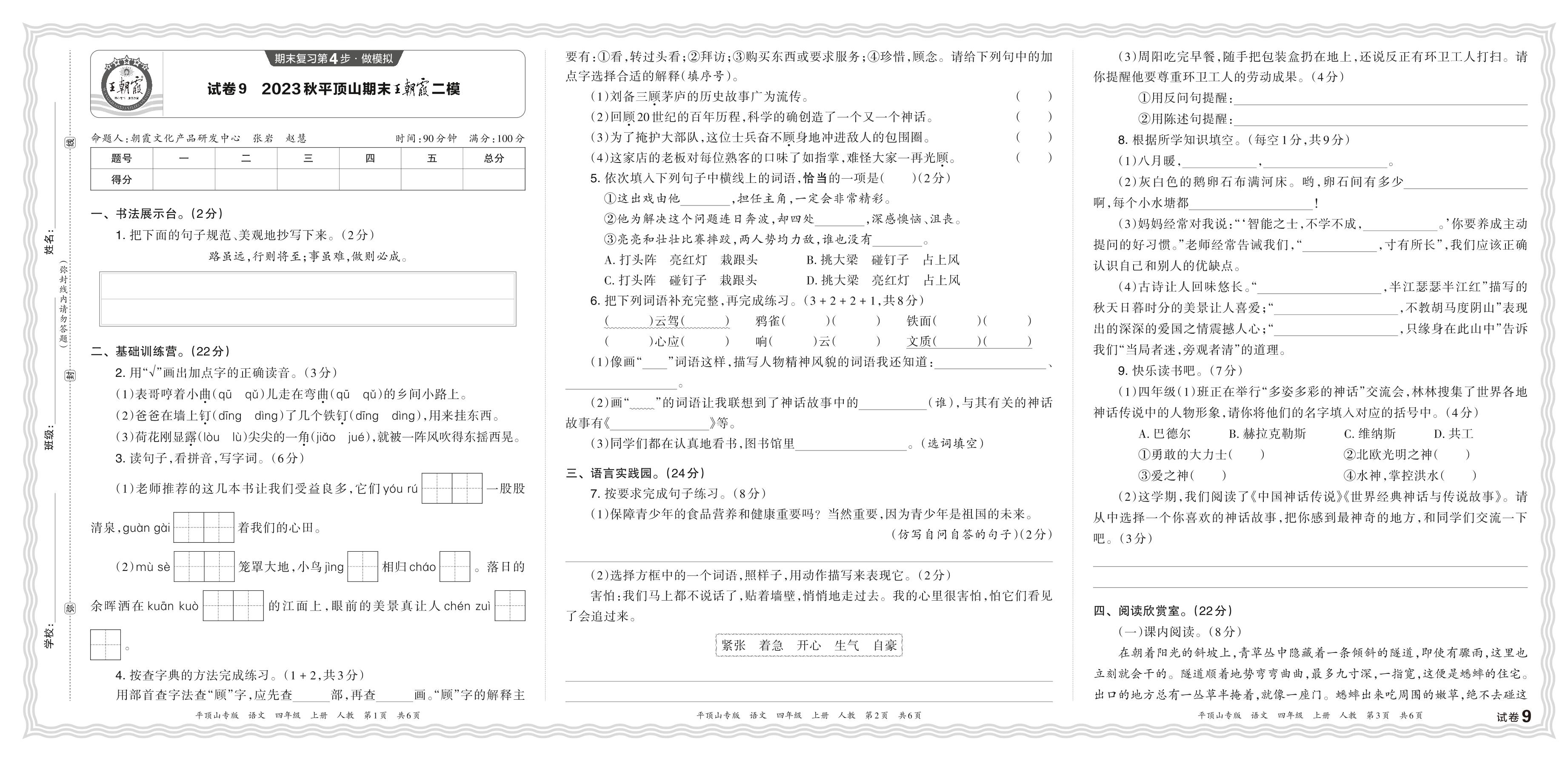 2023秋上册四年级语文人教版 河南平顶山期末王朝霞二模【9】