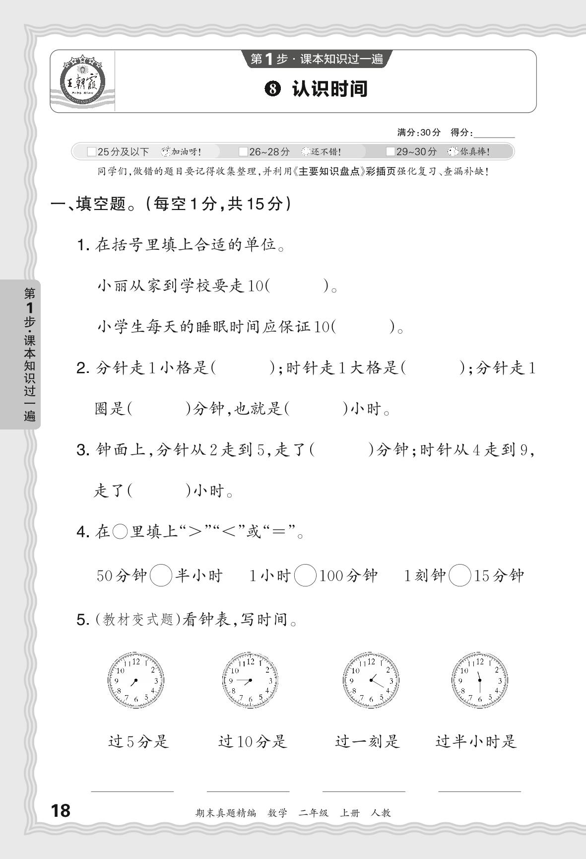 2023秋上册二年级数学人教版 期末过课本JB版·认识时间【8】