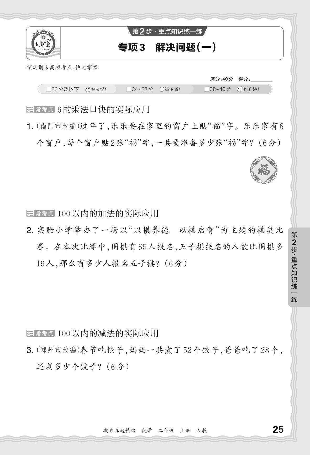 2023秋上册二年级数学人教版 期末专项卷JB版·解决问题(一)【3】