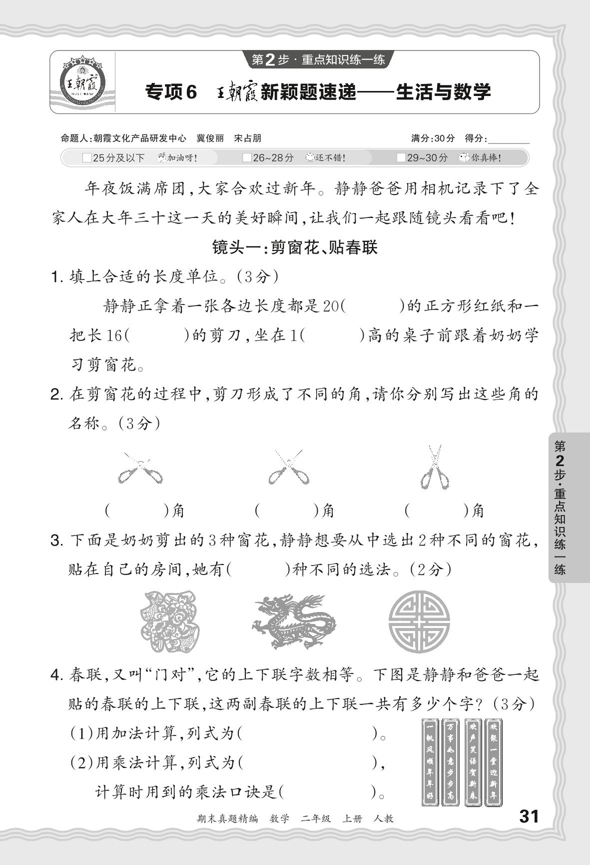 2023秋上册二年级数学人教版 期末专项卷JB版·王朝霞新颖题速递——生活与数学【6】