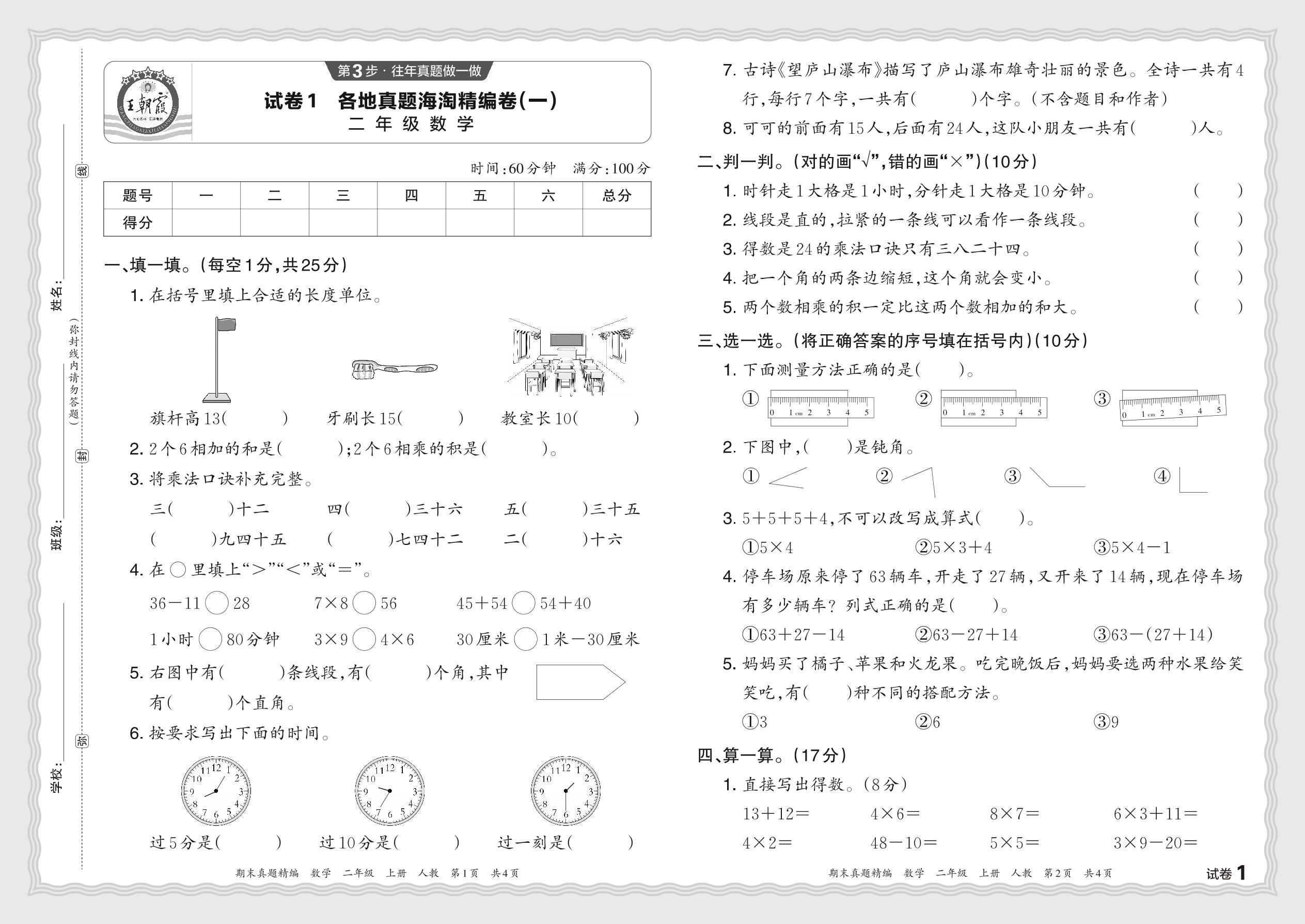 2023秋上册二年级数学人教版 各地真题海淘精编卷(一)JB