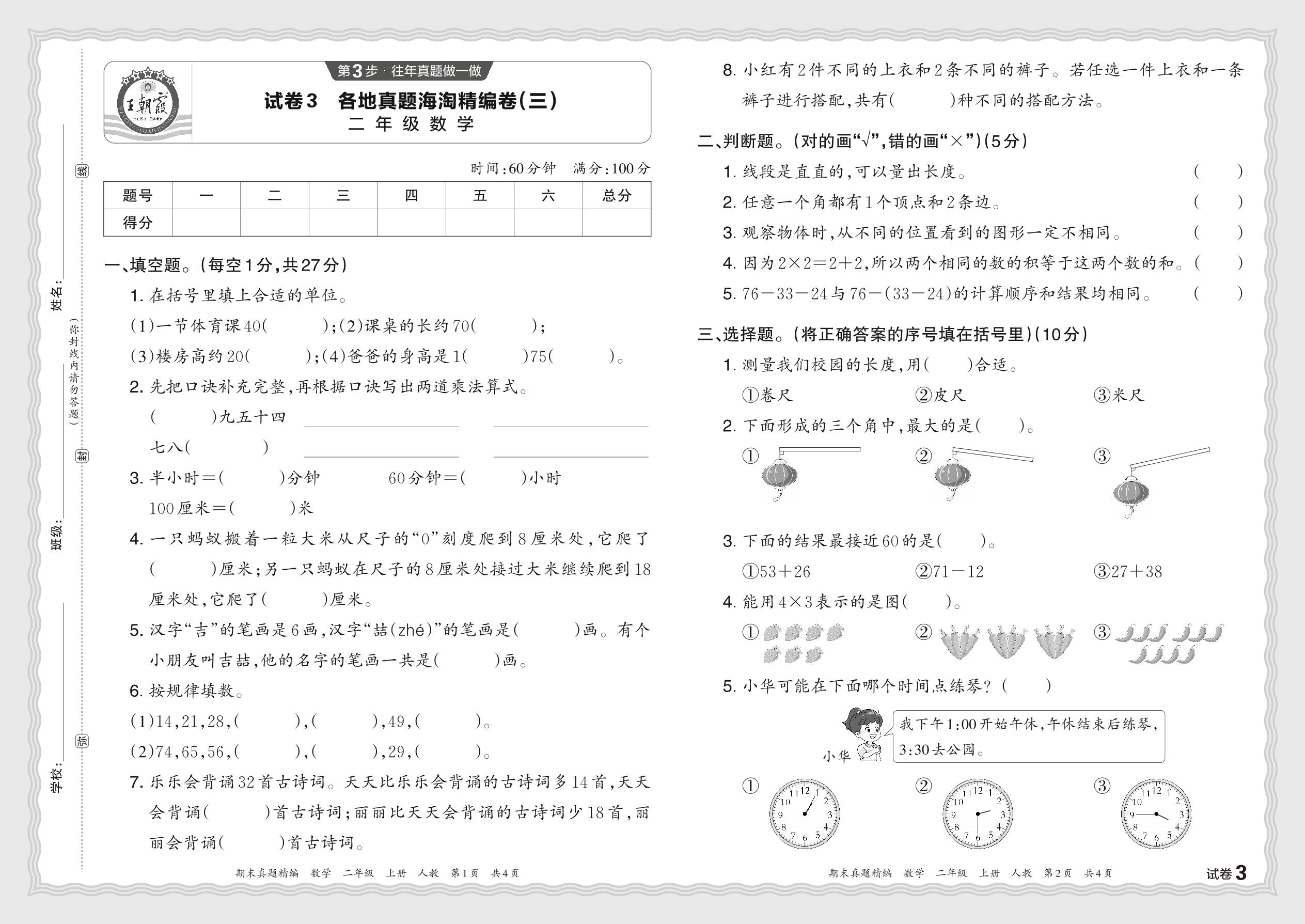 2023秋上册二年级数学人教版 各地真题海淘精编卷(三)JB