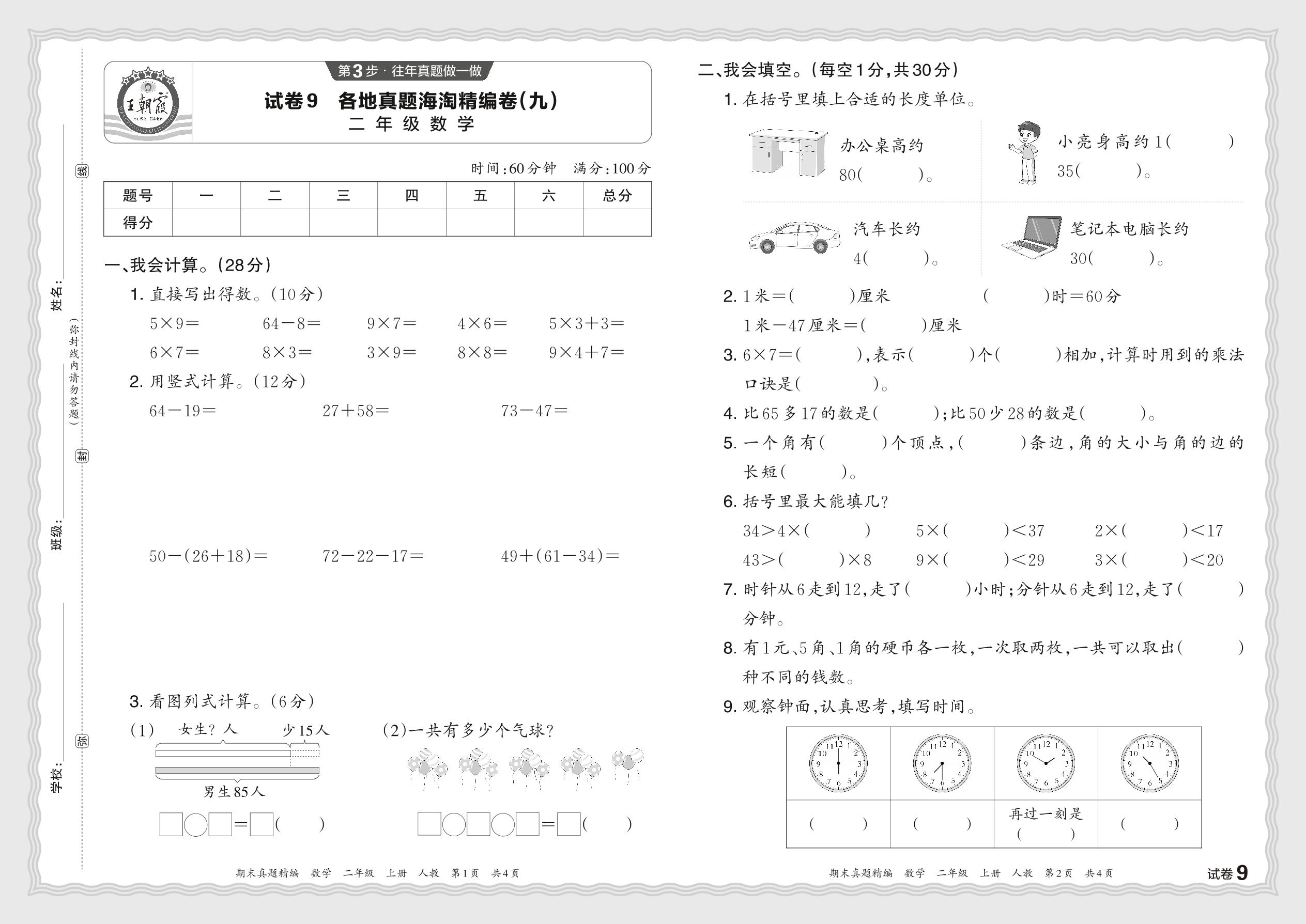 2023秋上册二年级数学人教版 各地真题海淘精编卷(九)JB