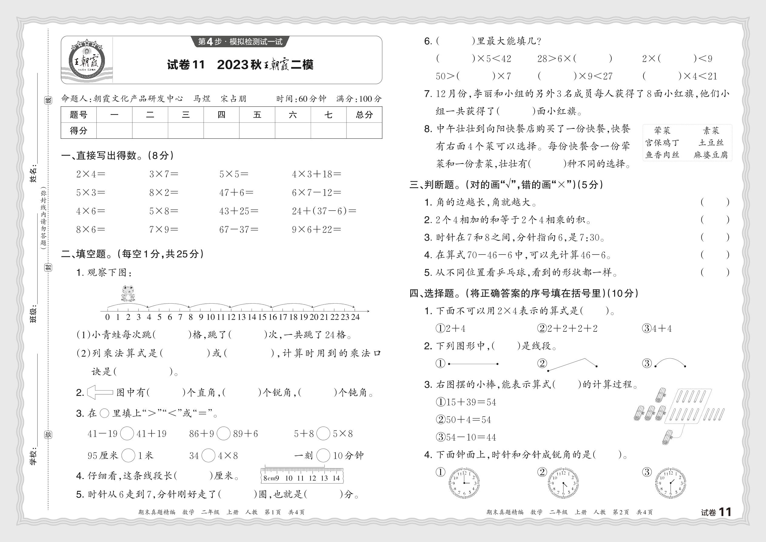 2023秋上册二年级数学人教版 王朝霞二模JB