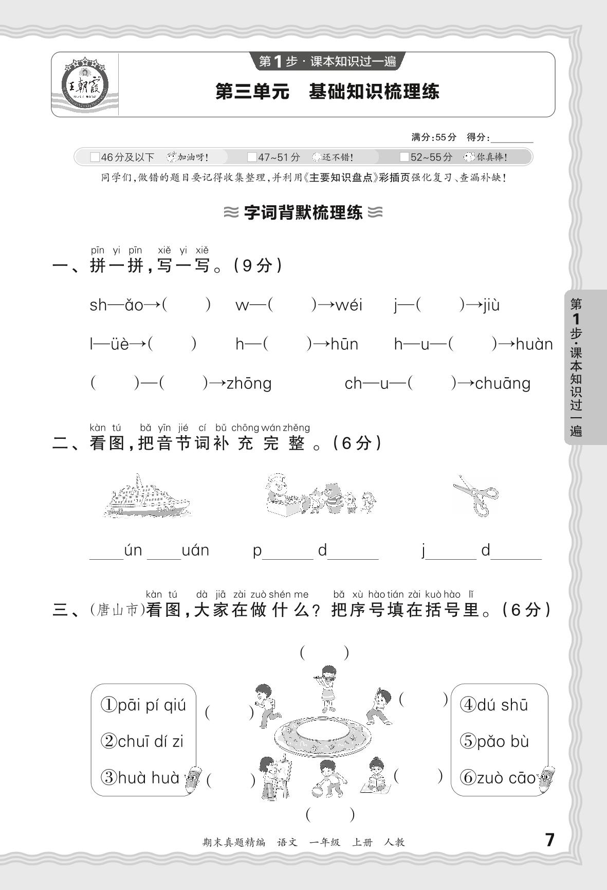 2023秋上册一年级语文人教版 期末过课本JB版·第三单元 基础知识梳理练