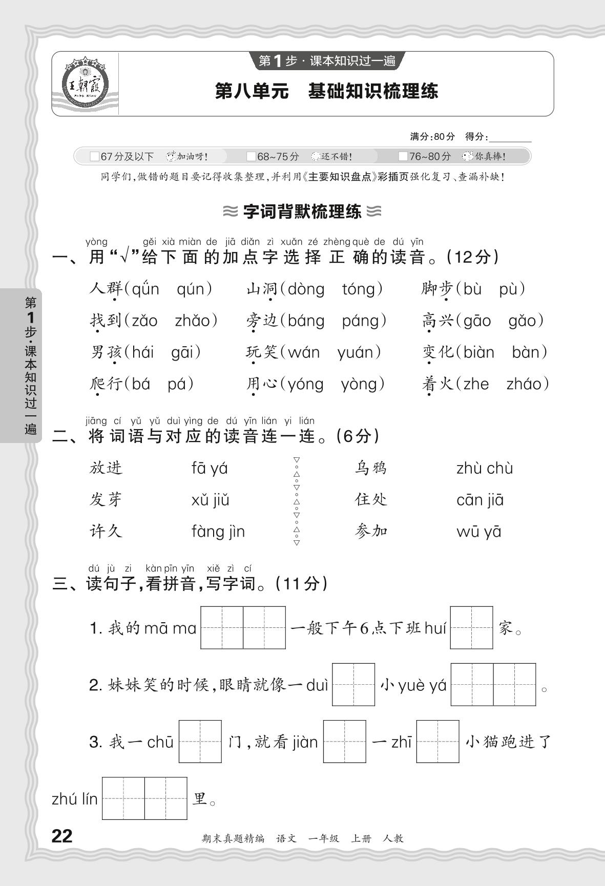 2023秋上册一年级语文人教版 期末过课本JB版·第八单元 基础知识梳理练
