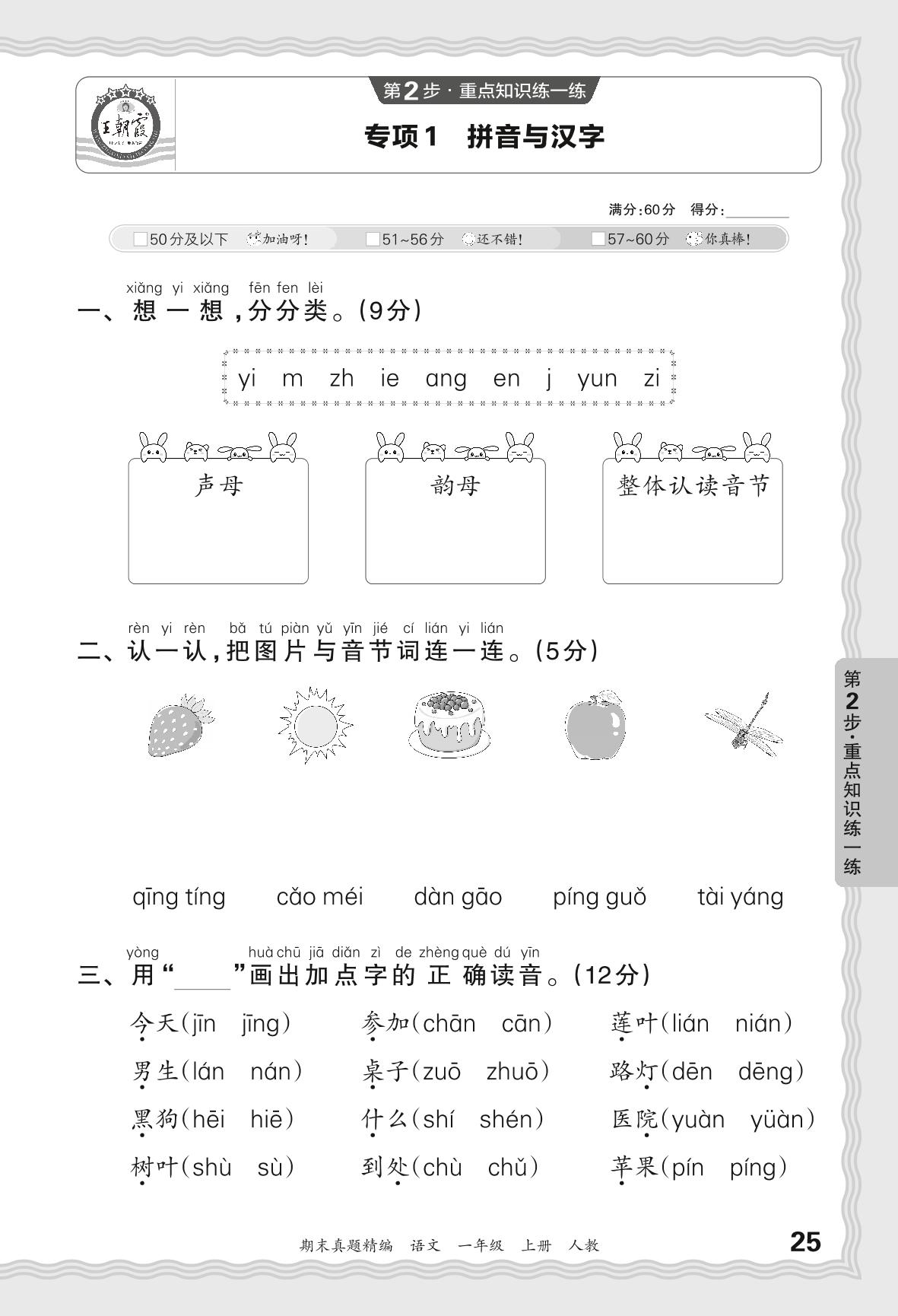 2023秋上册一年级语文人教版 期末专项卷JB版·拼音与汉字【1】