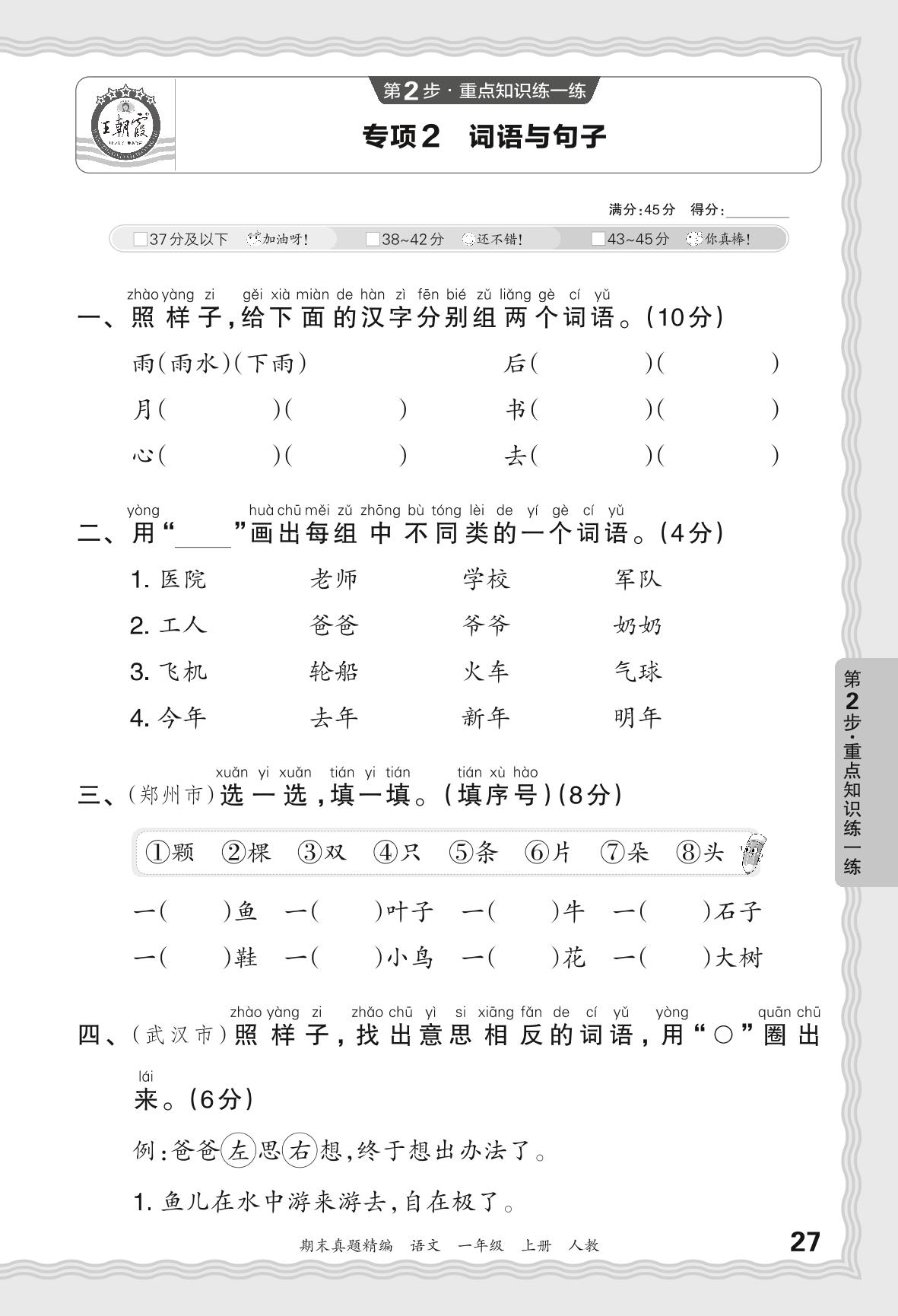 2023秋上册一年级语文人教版 期末专项卷JB版·词语与句子【2】