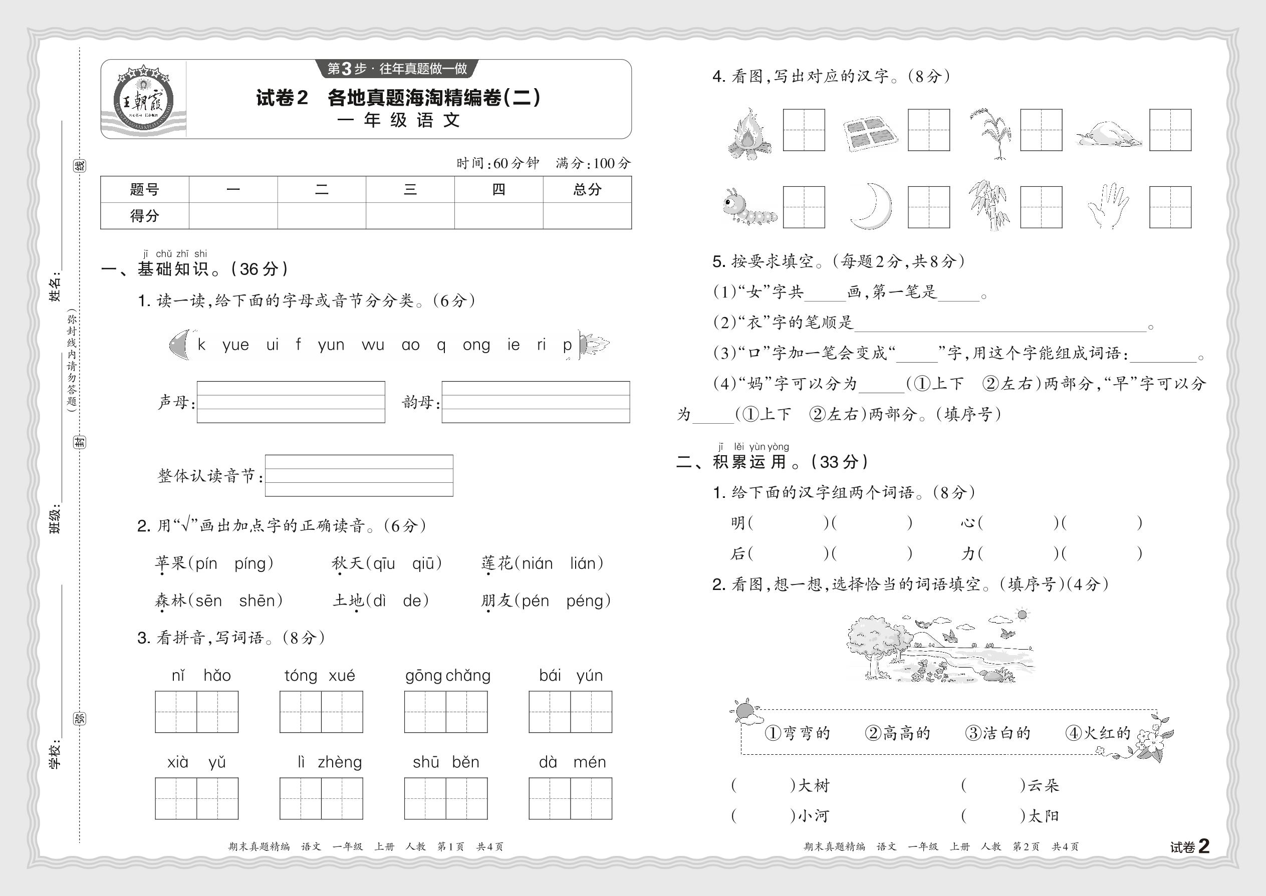 一年级语文人教版上册期末卷