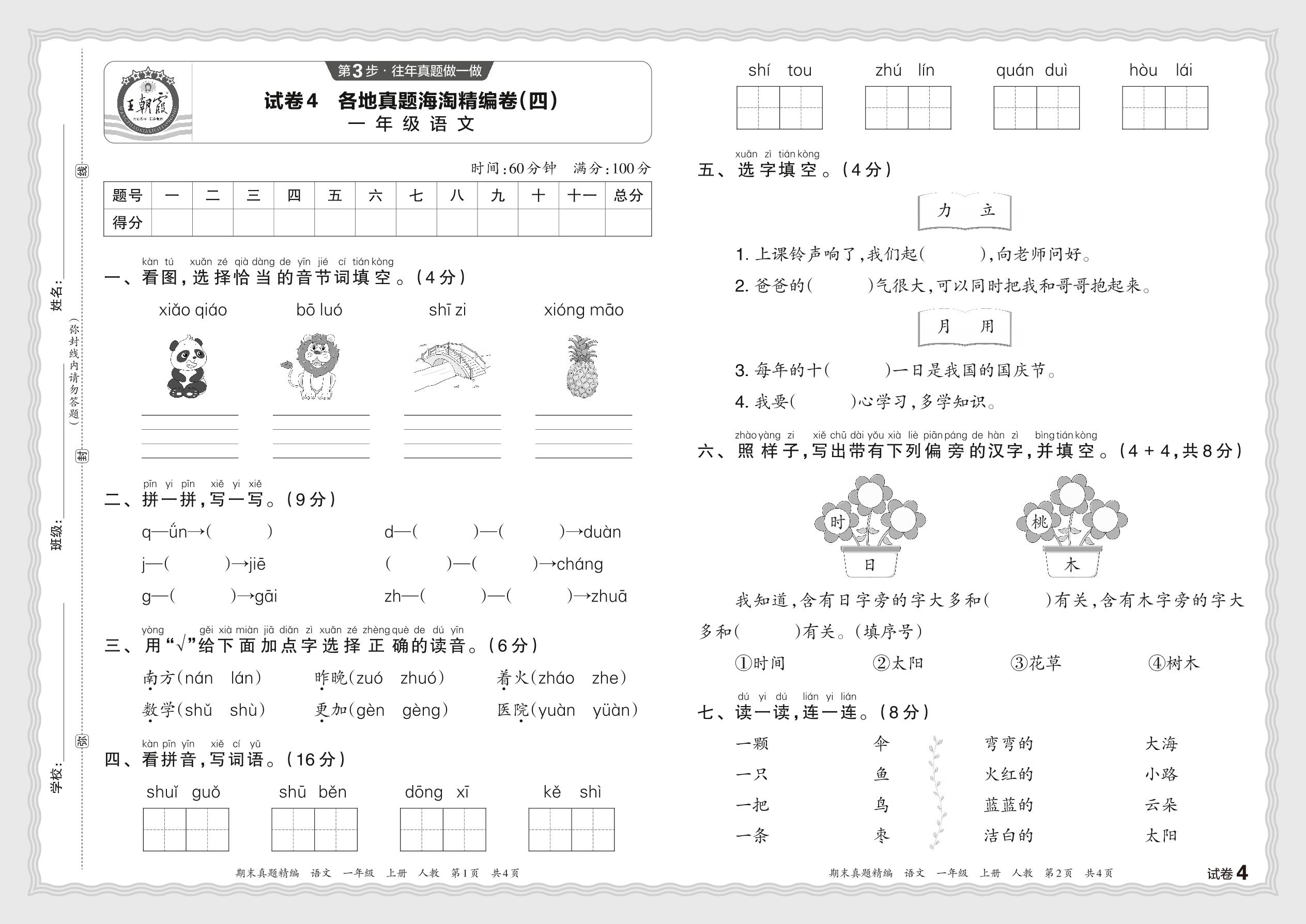 2023秋上册一年级语文人教版 各地真题海淘精编卷(四)JB
