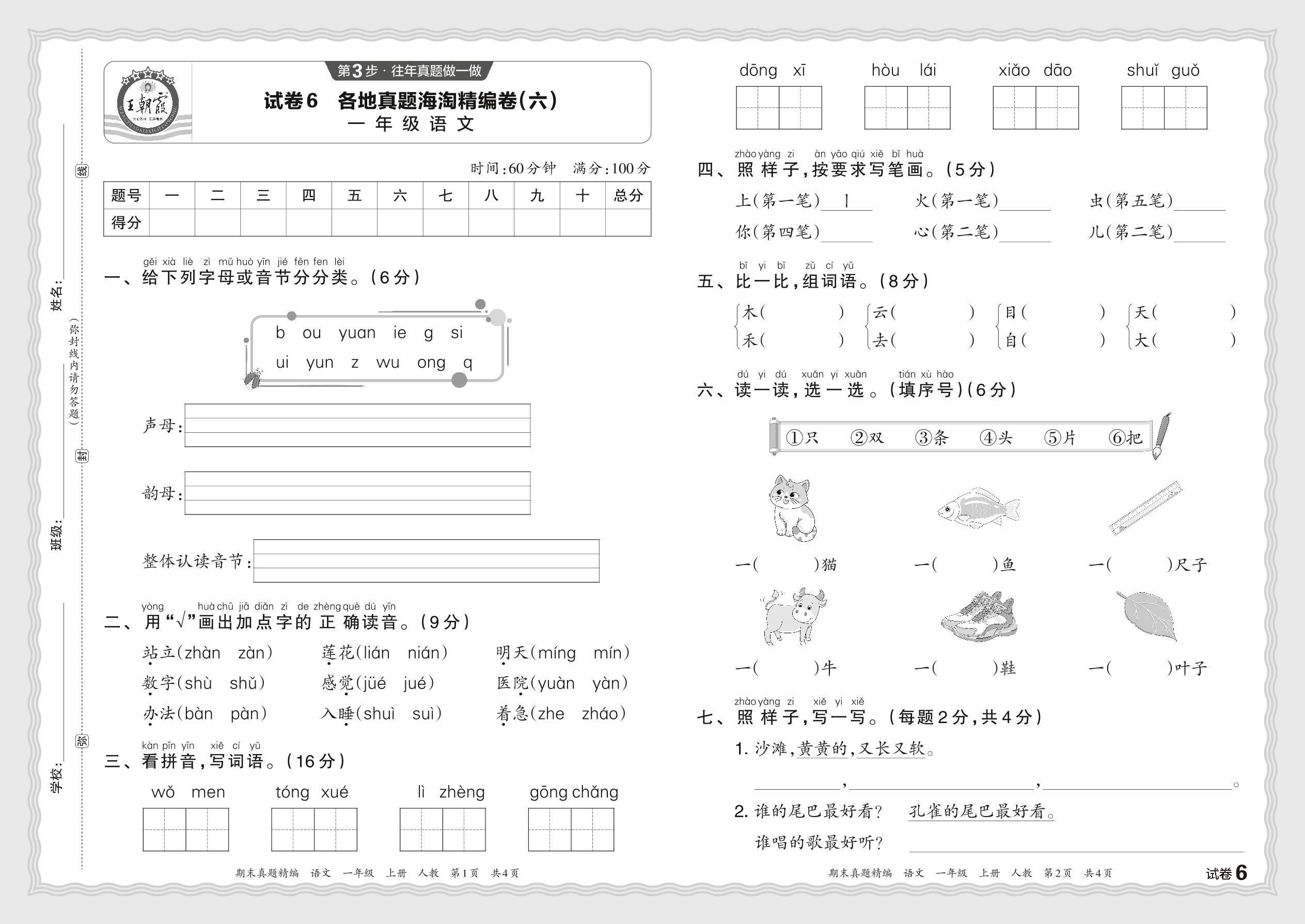 2023秋上册一年级语文人教版 各地真题海淘精编卷(六)JB