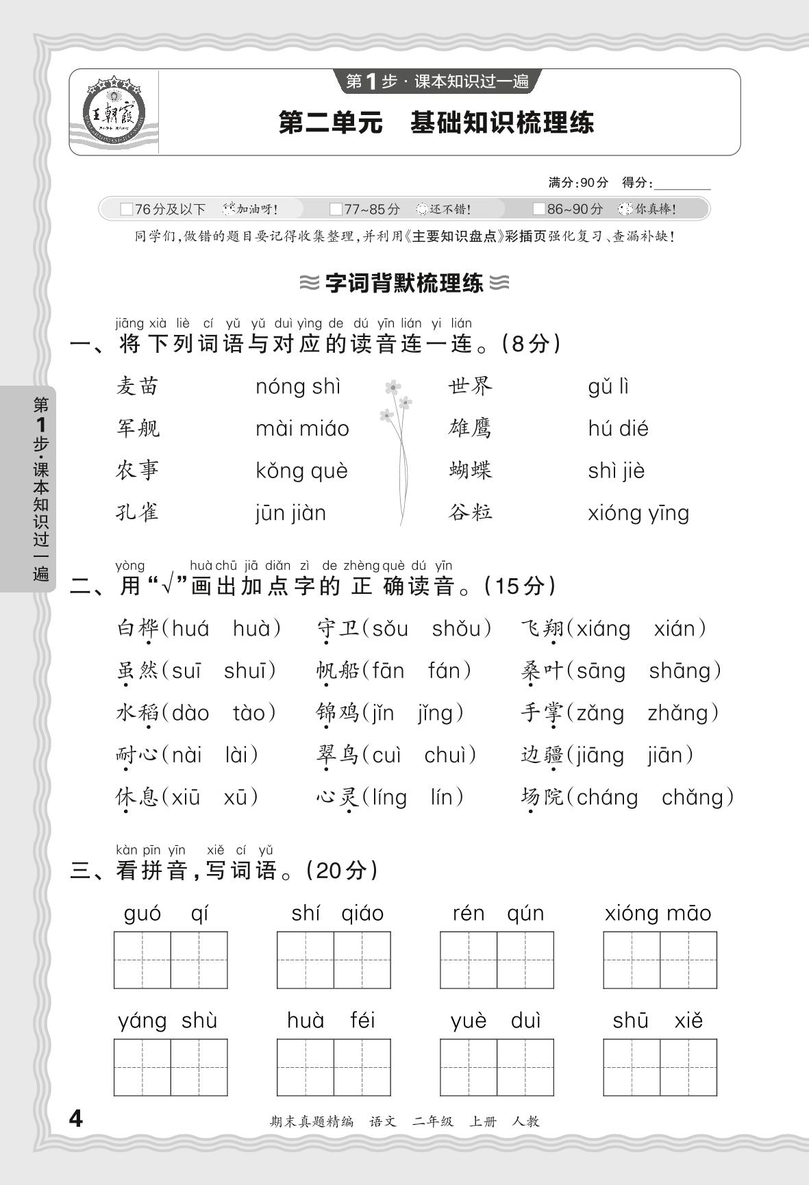 2023秋上册二年级语文人教版 期末过课本JB版·第二单元 基础知识梳理练