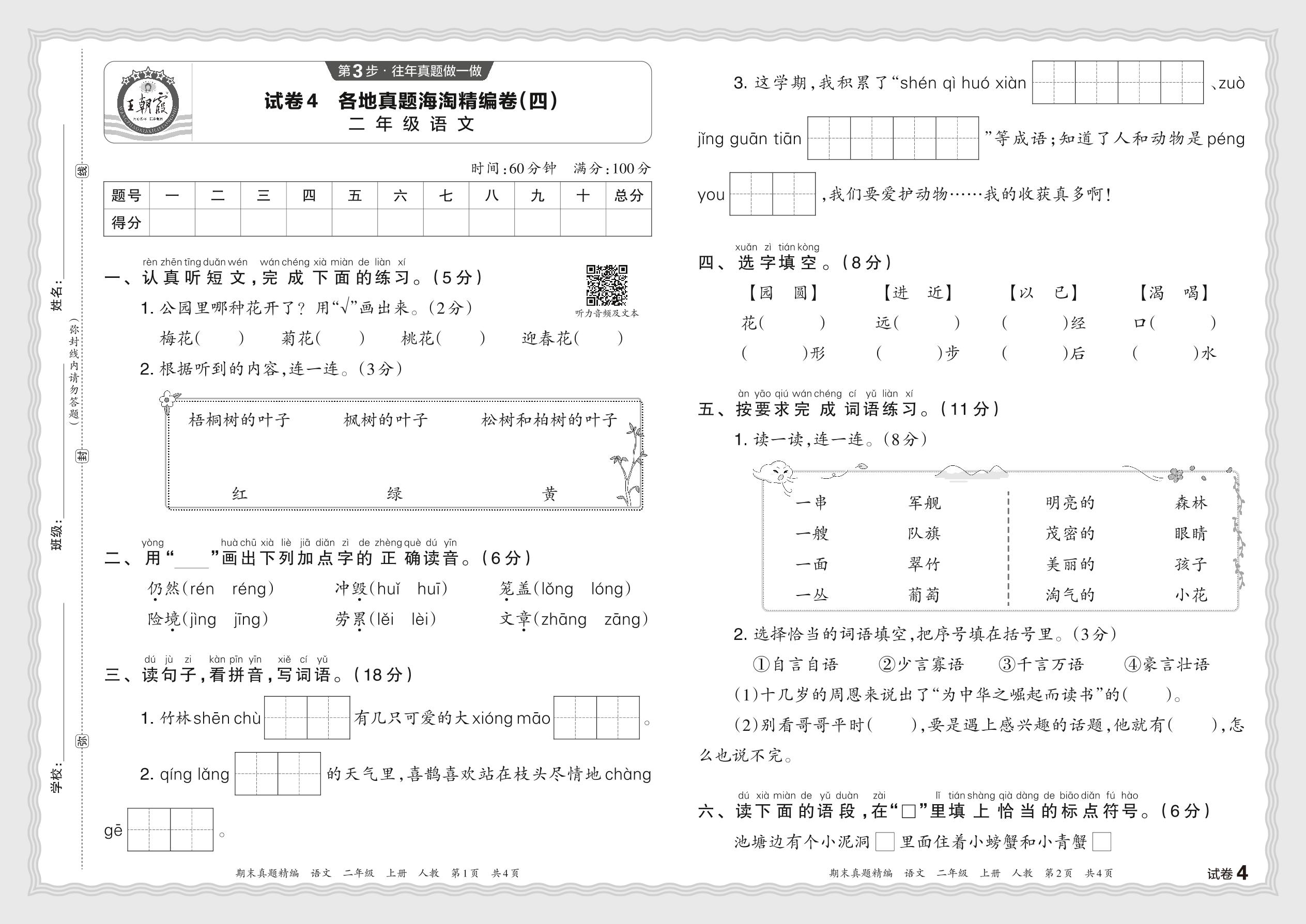 2023秋上册二年级语文人教版 各地真题海淘精编卷(四)JB