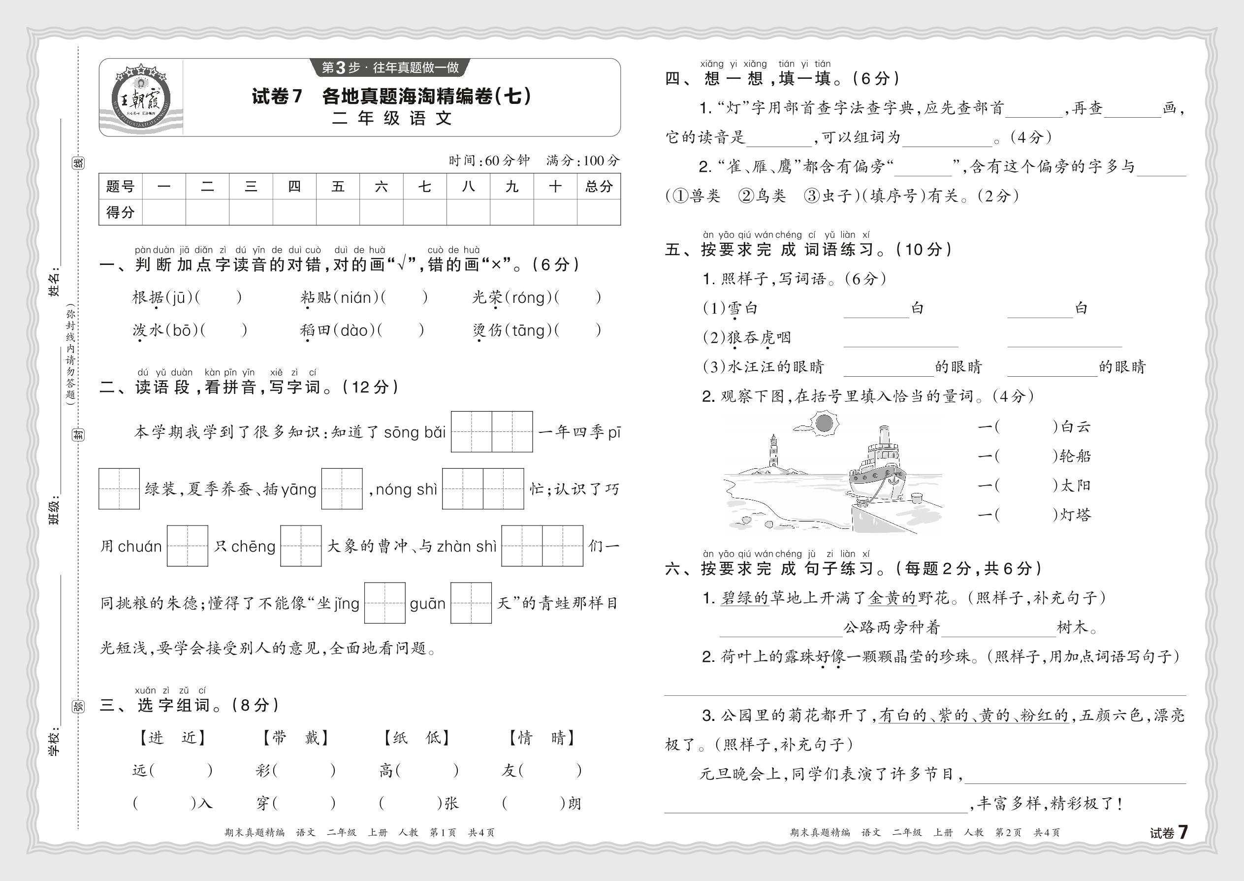 2023秋上册二年级语文人教版 各地真题海淘精编卷(七)JB