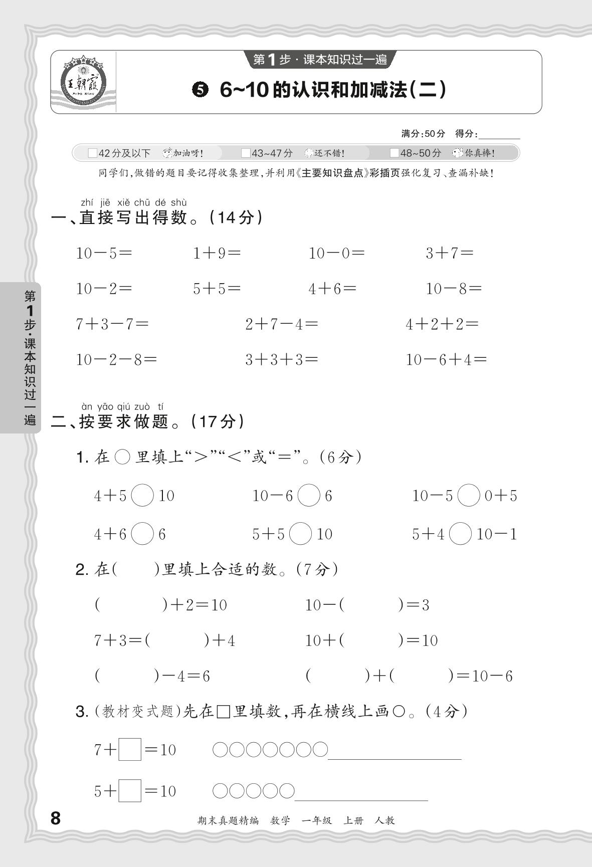 一年级数学人教版上册过课本