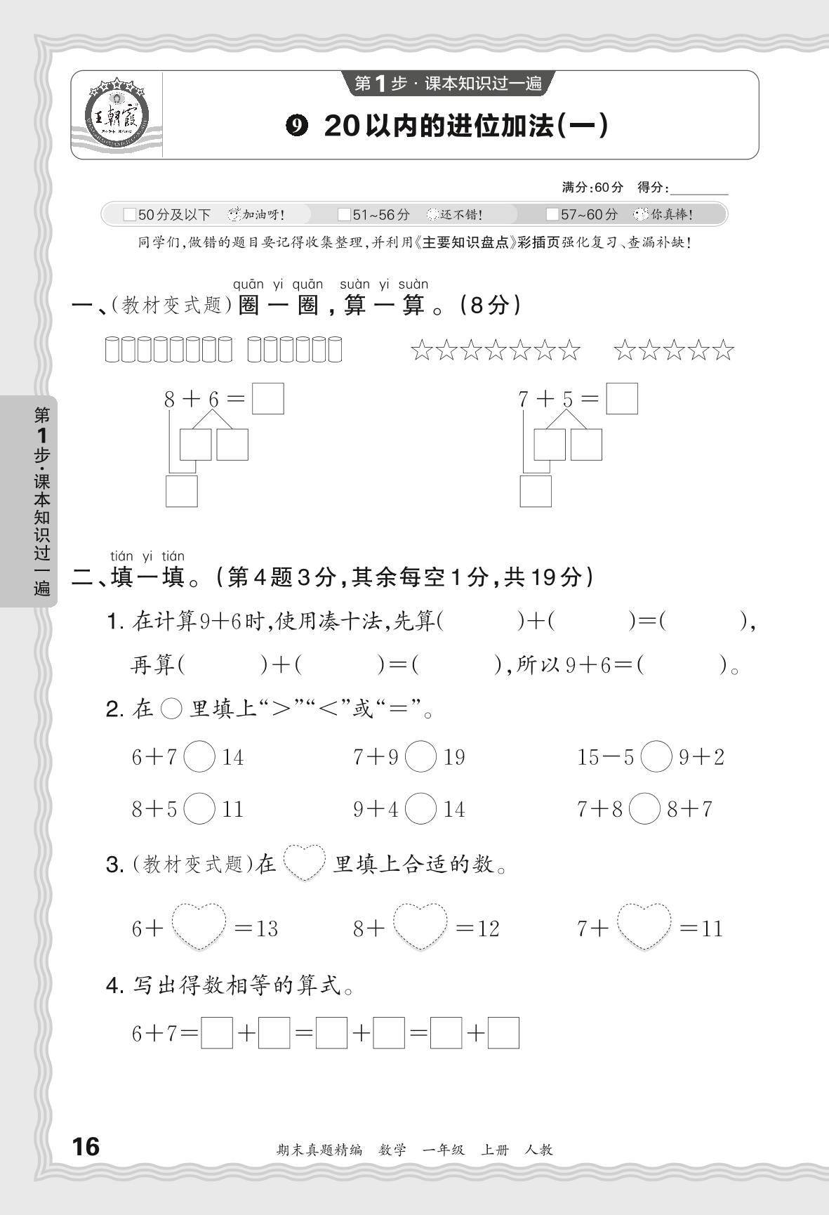 2023秋上册一年级数学人教版 期末过课本JB版·20以内的进位加法(一)【9】