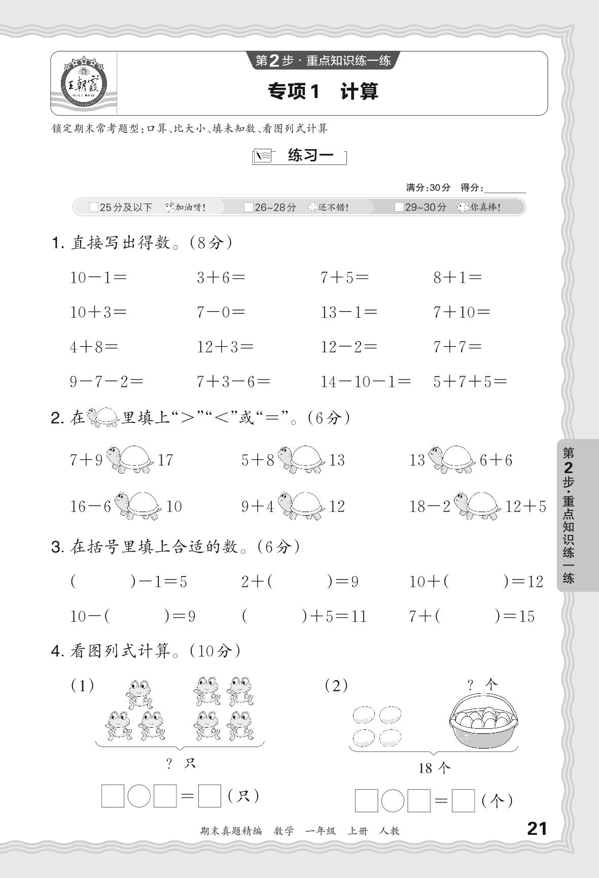 2023秋上册一年级数学人教版 期末专项卷JB版·计算【1】