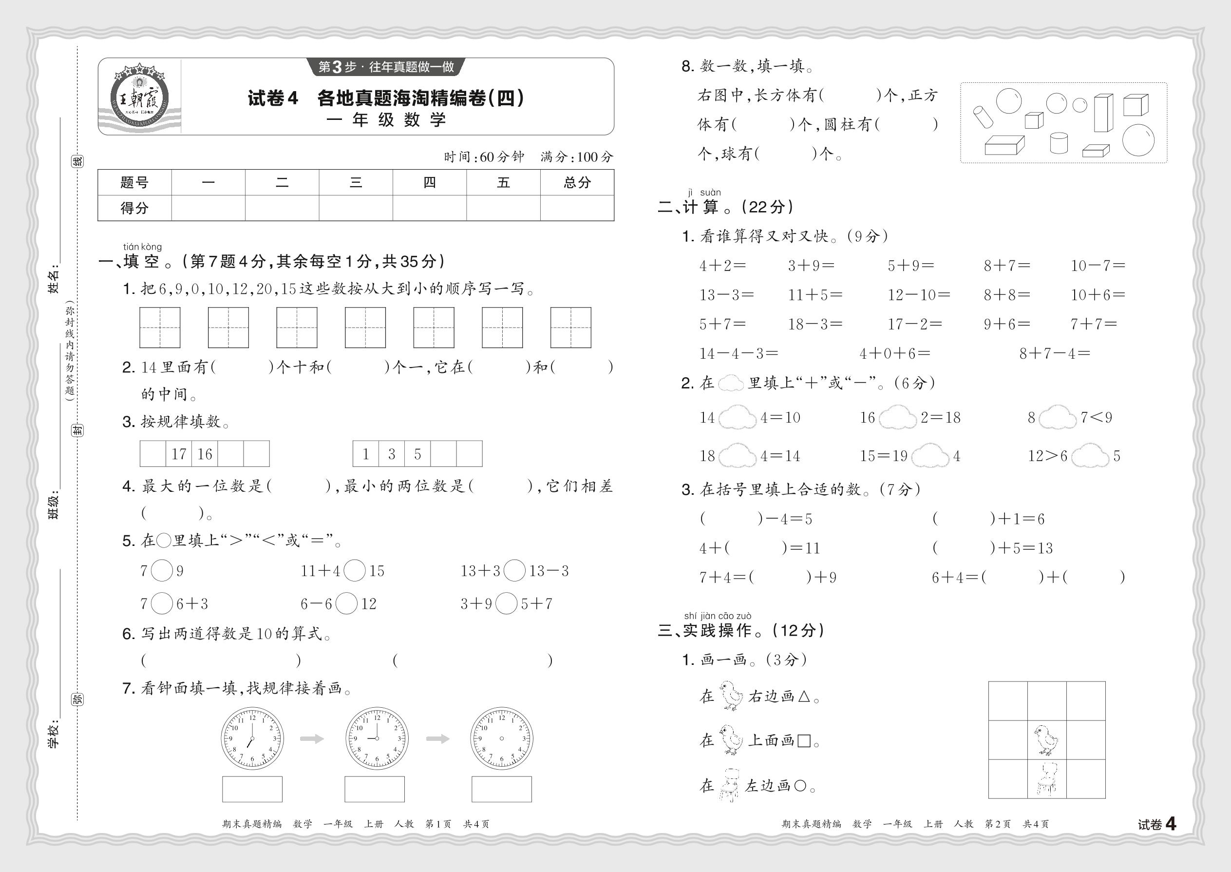 2023秋上册一年级数学人教版 各地真题海淘精编卷(四)JB