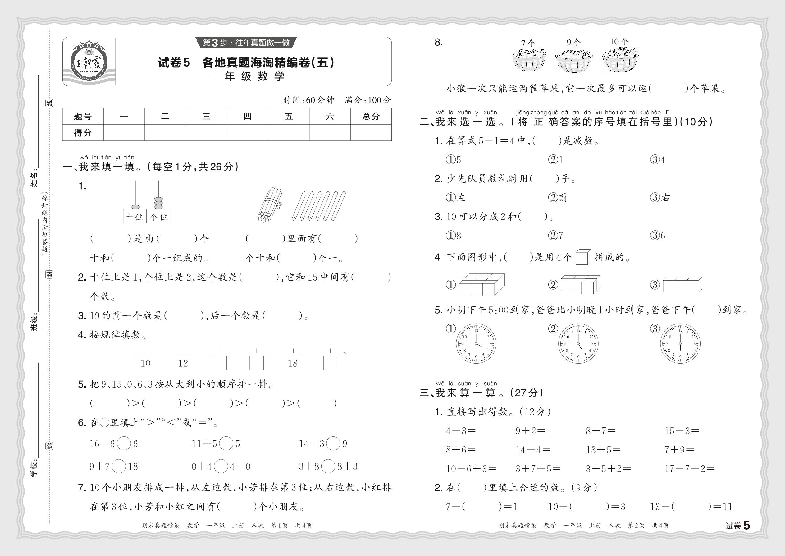 2023秋上册一年级数学人教版 各地真题海淘精编卷(五)JB