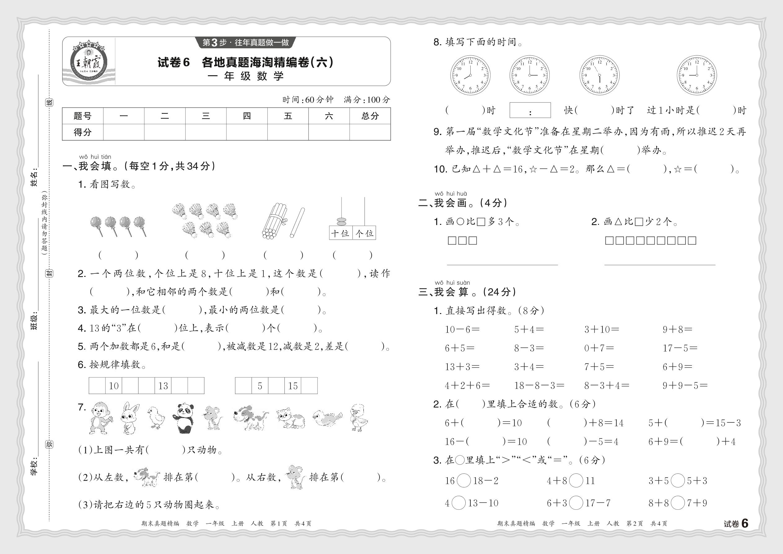 2023秋上册一年级数学人教版 各地真题海淘精编卷(六)JB