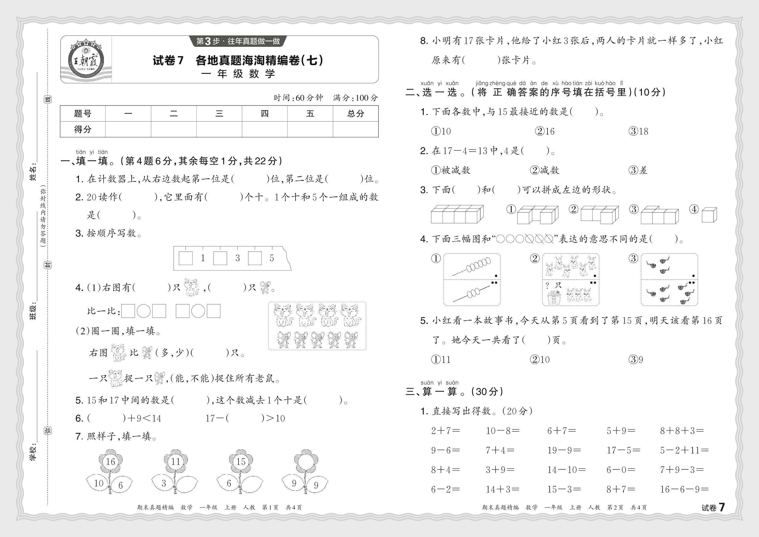 2023秋上册一年级数学人教版 各地真题海淘精编卷(七)JB