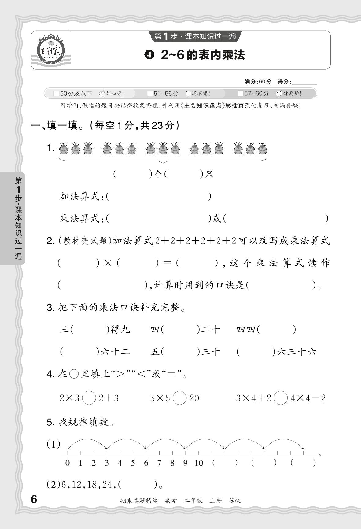 2023秋上册二年级数学苏教版 期末过课本JB版·2-6的表内乘法【4】