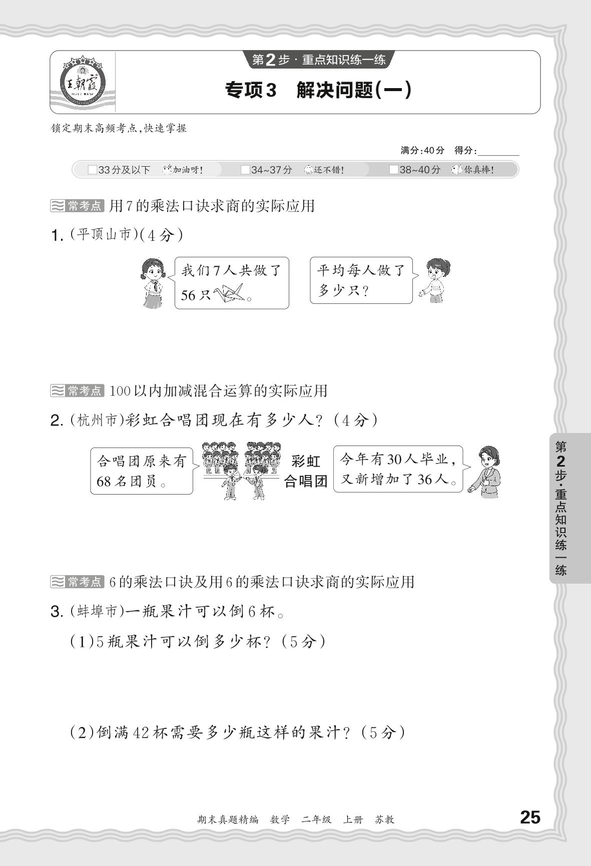 2023秋上册二年级数学苏教版 期末专项卷JB版·解决问题(一)【3】
