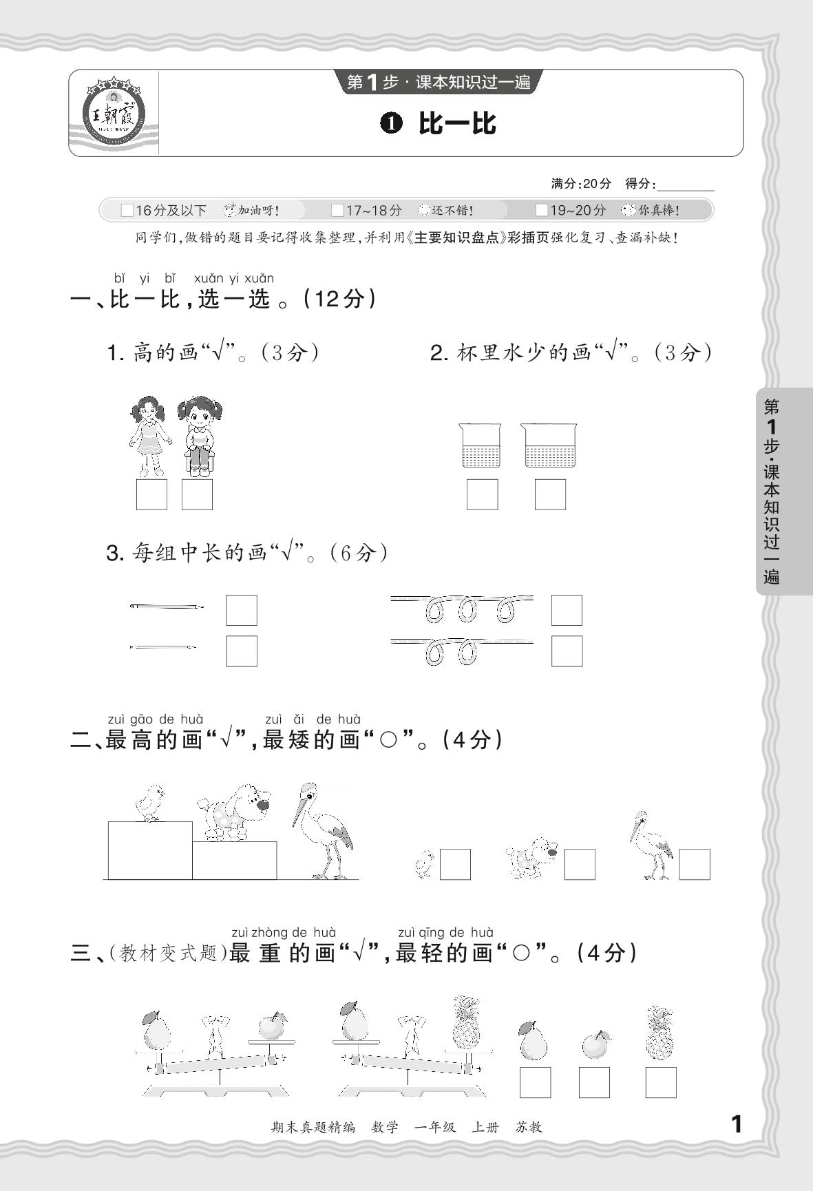 2023秋上册一年级数学苏教版 期末过课本JB版·比一比【1】