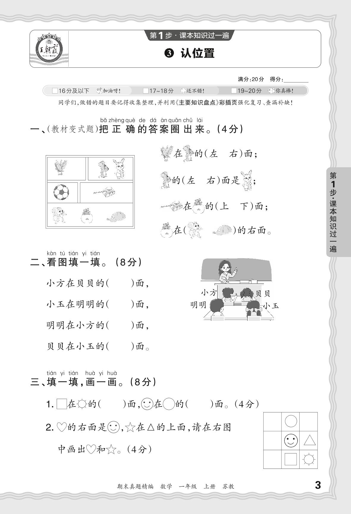 2023秋上册一年级数学苏教版 期末过课本JB版·认识位置【3】