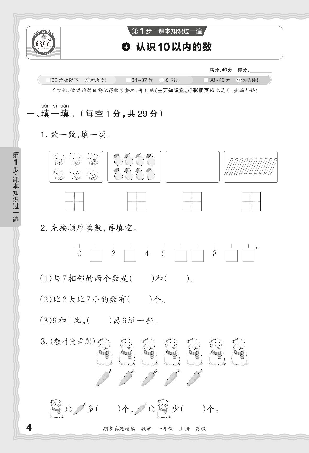 2023秋上册一年级数学苏教版 期末过课本JB版·认识10以内的数【4】