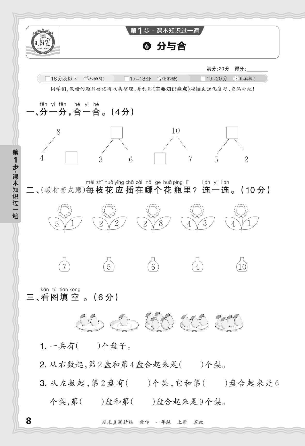 2023秋上册一年级数学苏教版 期末过课本JB版·分与合【6】