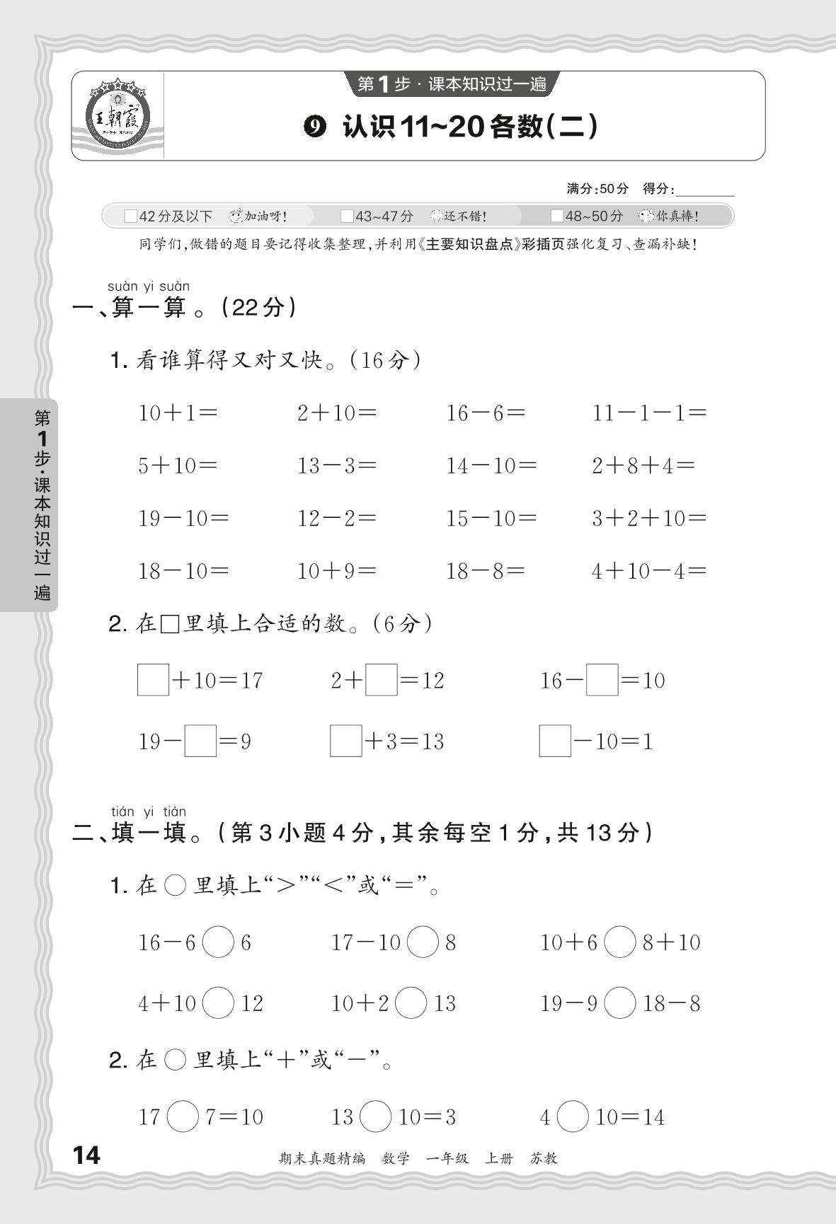 2023秋上册一年级数学苏教版 期末过课本JB版·认识10-21各数(二)【9】