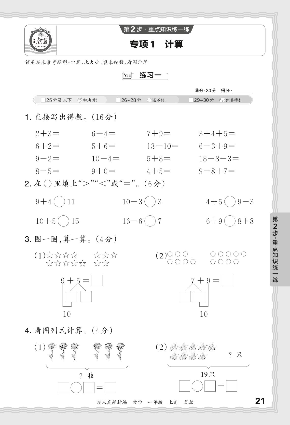 2023秋上册一年级数学苏教版 期末专项卷JB版·计算【1】